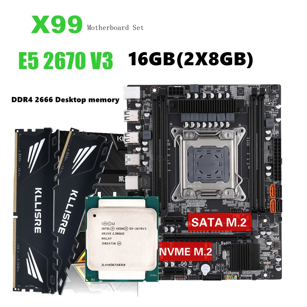 Kllisre X99 настольная материнская плата + E5 2670 V3 + DDR4 2X8GB 2666
