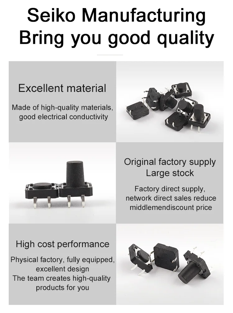 10PCS Tactile Tact Mini Push Button Switch SMD Micro switch 12x12 12*12*4.3mm 5mm 6 7 8 9 10 11 12 mm 4Pin Micro tact switch