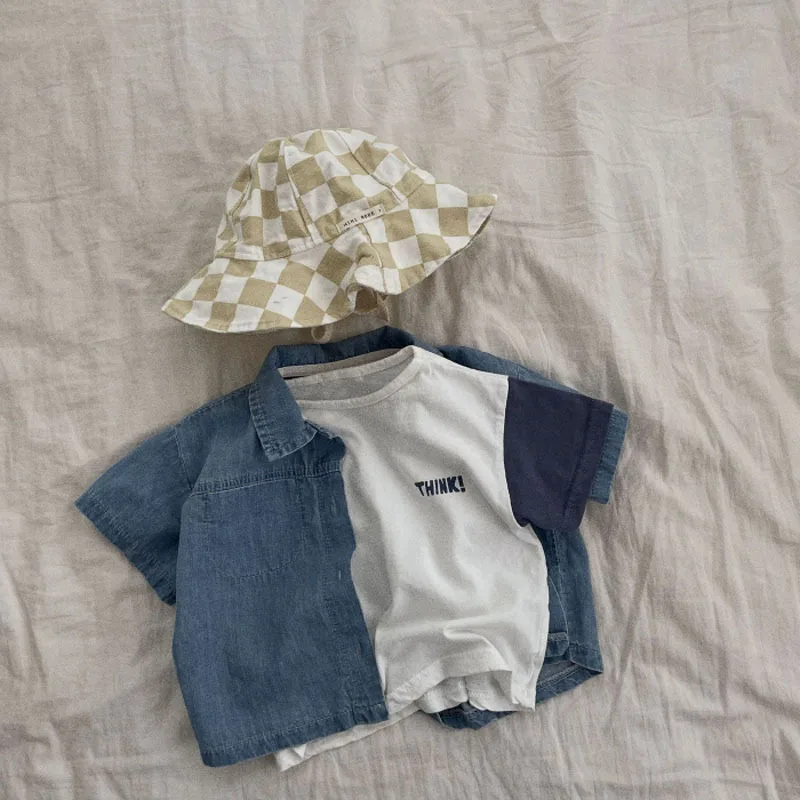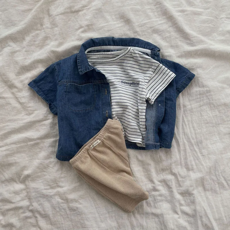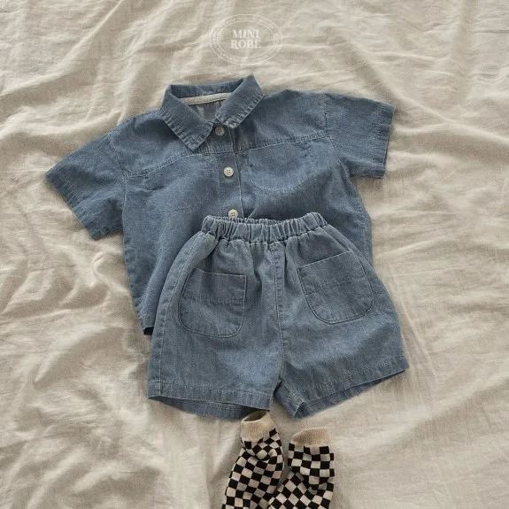 Повседневная ковбойская рубашка с короткими рукавами для маленьких мальчиков и девочек + шорты, комплекты одежды летний детский костюм для маленьких мальчиков и девочек детская одежда