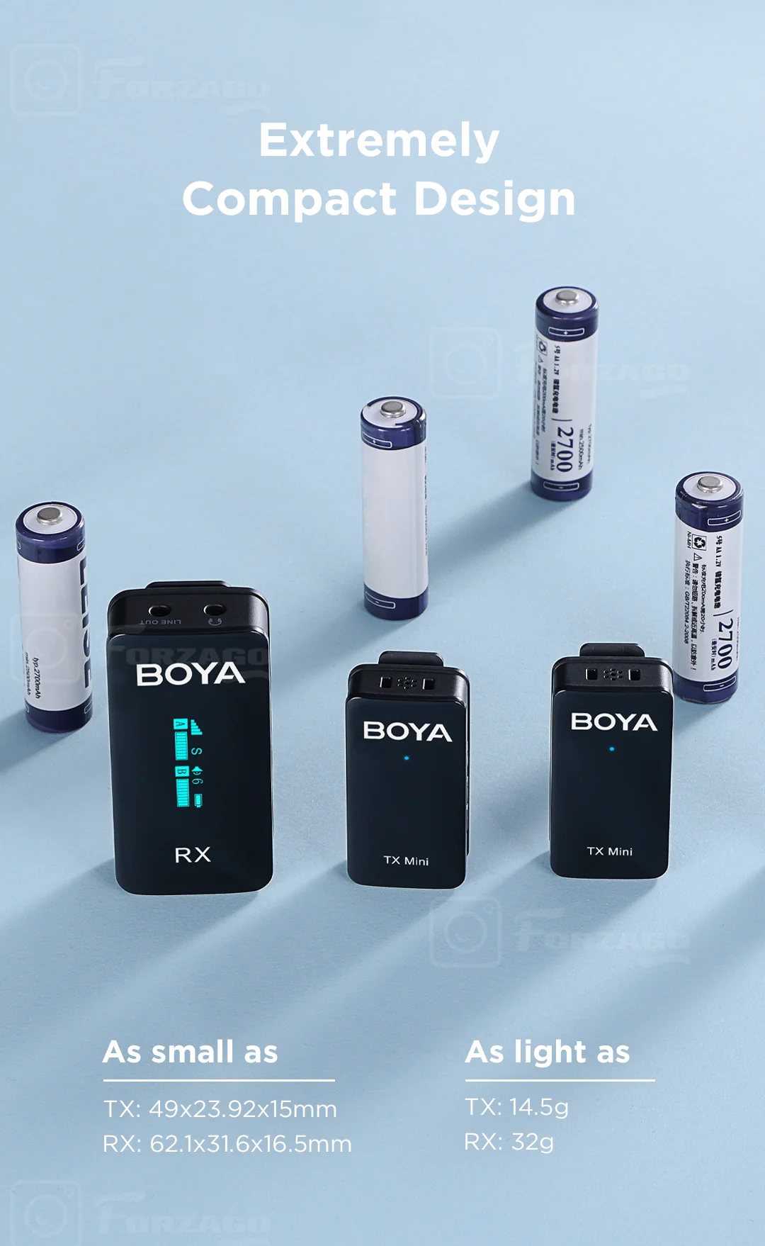 С точки зрения BY-XM6 Mini концепция дизайна, они придерживаются приоритет в том, что легкий и удобный, передатчик каждый весит всего 14,5 г и 34 г для приемника, соответственно, это очень впечатляющий прогресс и то, что называется «компактным, но универсальным» беспроводным микрофоном. Кроме того, Приемник оснащен oled-дисплеем, чтобы показать всю важную информацию, убедившись, что каждая деталь во время съемки может быть под контролем.