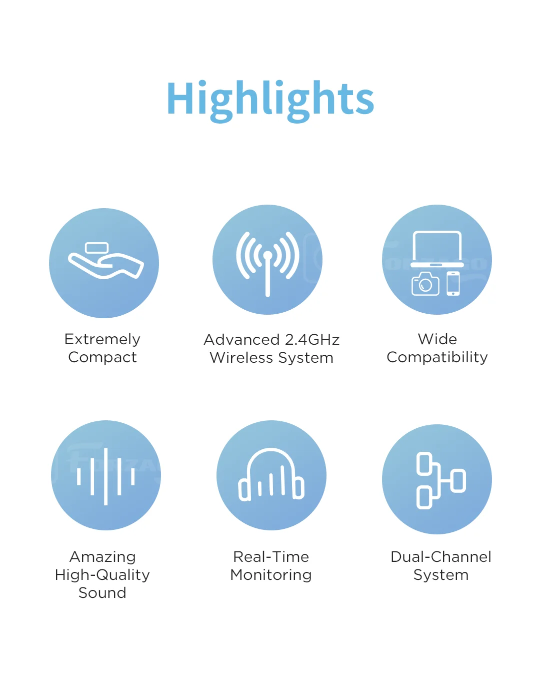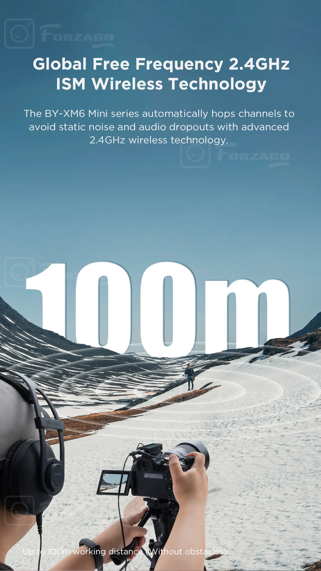 Введя продвинутый 2,4 GHz ISM технология беспроводной передачи данных, Встроенный всенаправленный микрофон и автоматическим частотная-hopping функции BY-XM6 мини-микрофонная система обеспечивает профессиональное высокое качество звука с впечатляющей чувствительностью-39 дБ и эффективно предотвращает статические шумы и автоматическое отключение. Кроме того, он обеспечивает стабильную и безпомехную передачу сигнала с диапазоном до 100 м без препятствий.