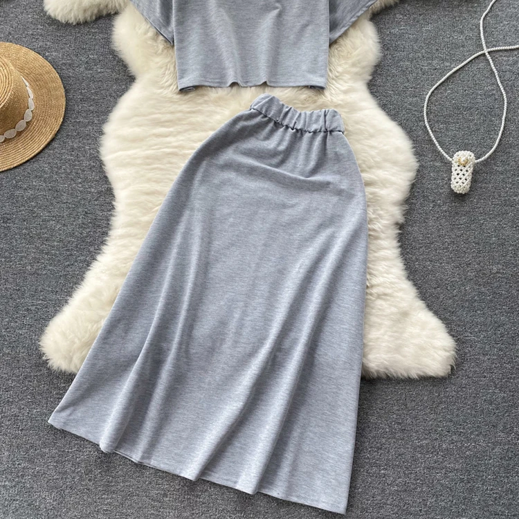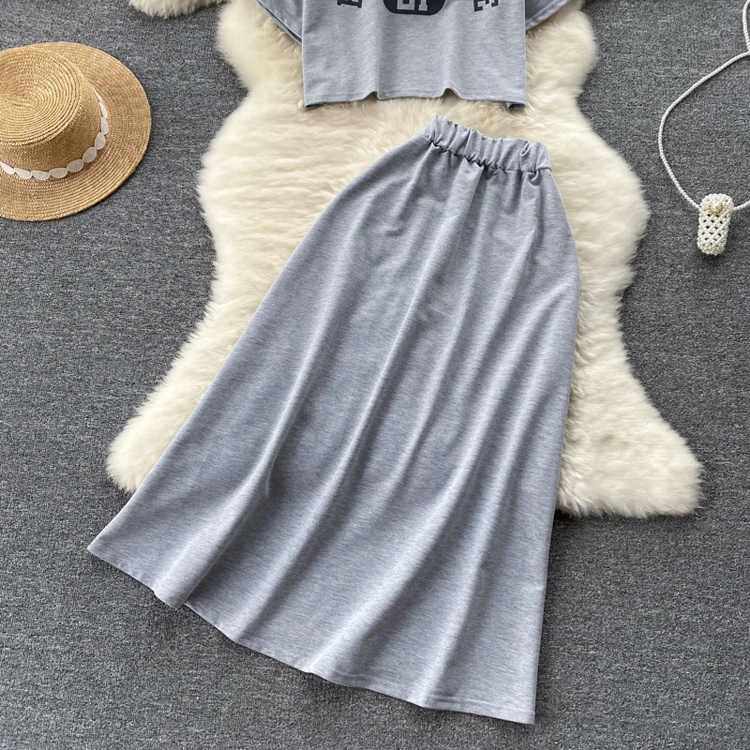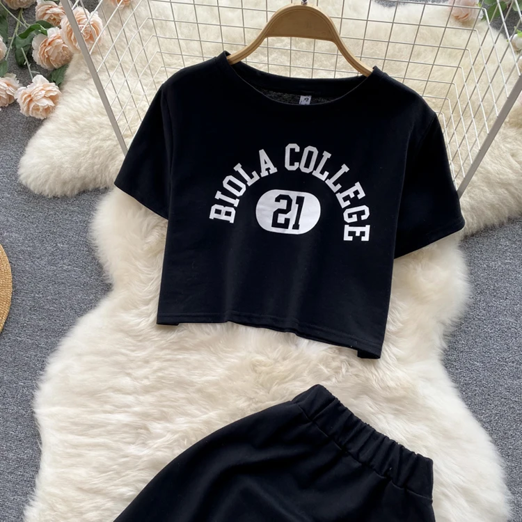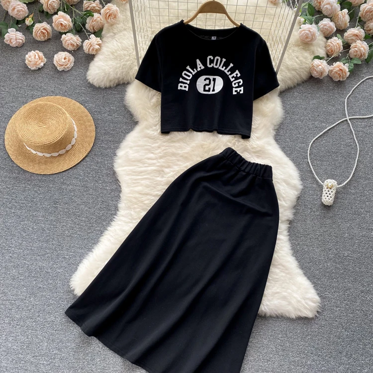 Женский свободный комплект из двух предметов, Повседневная футболка с круглым вырезом и юбка, модный офисный комплект с буквенным принтом, женская элегантная одежда, Ropa Femenina
