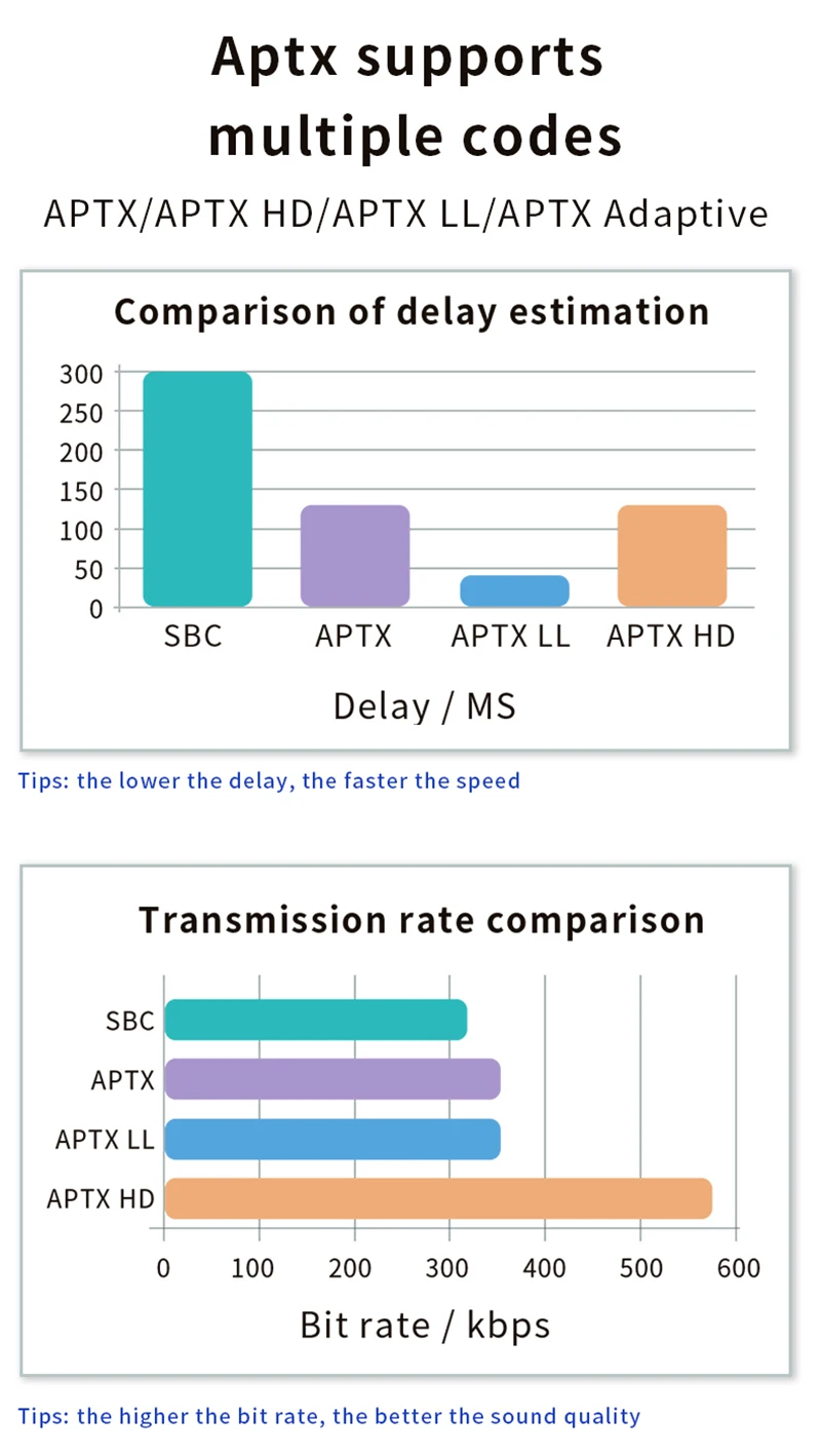 Аудиокодек: SBC/APTX/APTX-LL/APTX-HD/APTX-адаптивный