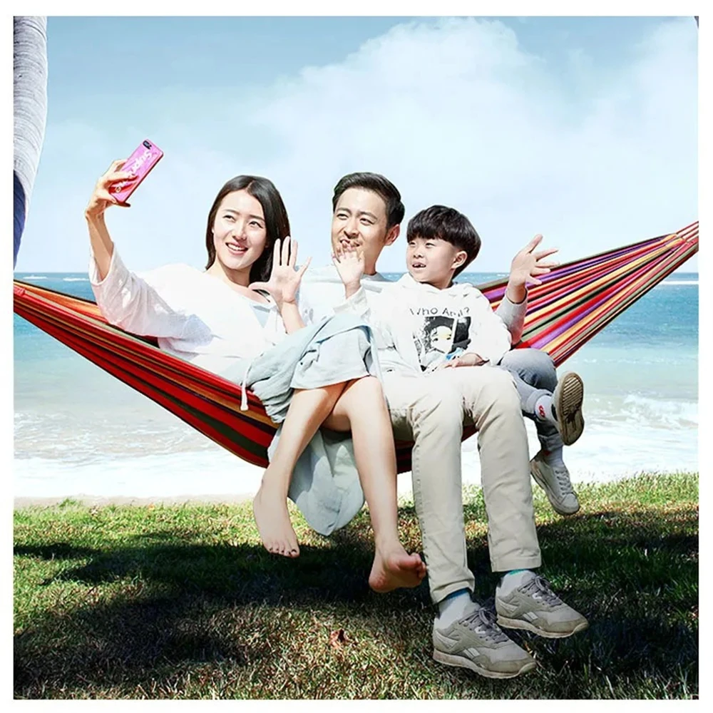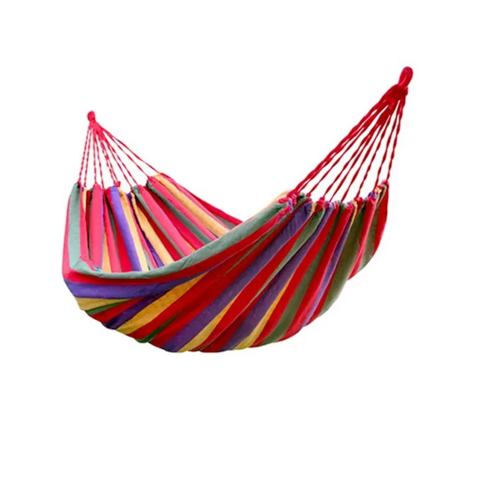 Outdoor Hammock Portable Garden Hammock Sports Home Travel Camping Swing Canvas Stripe Hang Bed Hammock Double Single People Size: 250 x 80cm(Approx),250 x 100cm(Approx),250 x 150cm(Approx) Tatal Length: 250cm(Approx) Fabric length: 190cm(Approx) Fabric Width: 80cm(Approx) Load-bearing: 300G,400G,500G Color: Red Stripe Strong hammock with stand weight of 120Kgs Material: Canvas/Nylon fabric 1pcs