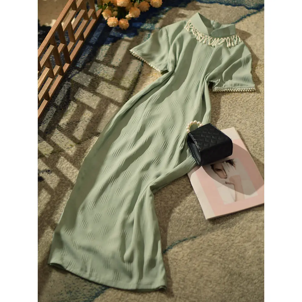 Китайское платье большой Тан костюм хан костюм cheongsam вечернее платье 022 Новый женский летний молодой стиль Улучшенный высокого класса Ретро Старый Шанхай средний и длинный банкетное платье
