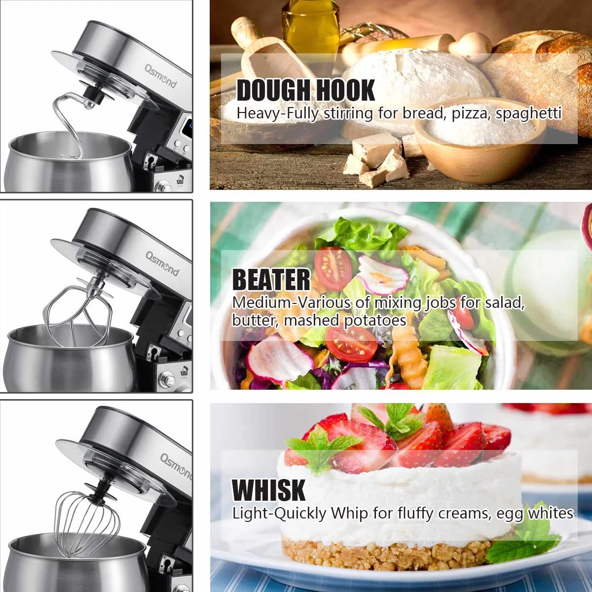 -Миксер для теста крючки и лопатка для взбивания выполнены из алюминиевый сплав, они светильник и крепкий, но нельзя мыть в посудомоечной машине. Нагрев в посудомоечной машине приведет к коррозии гальванического покрытия посуды