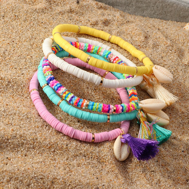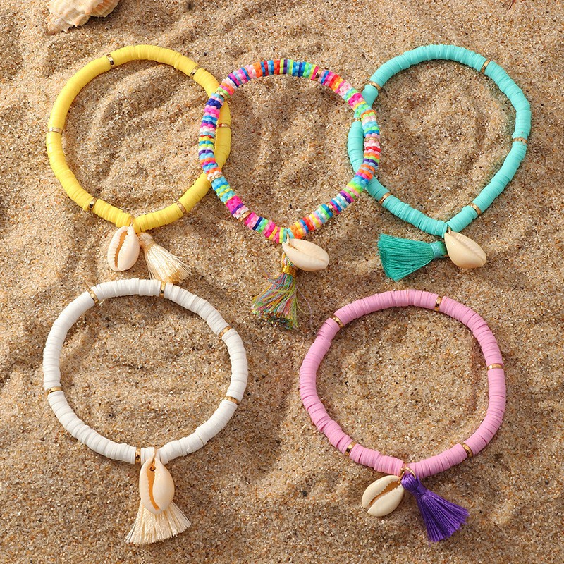 2022 богемский цветной Мягкий полимерный глиняный браслет с кисточками женский винтажный браслет в виде ракушки для женщин ювелирное изделие Bijoux Femme ZR-02