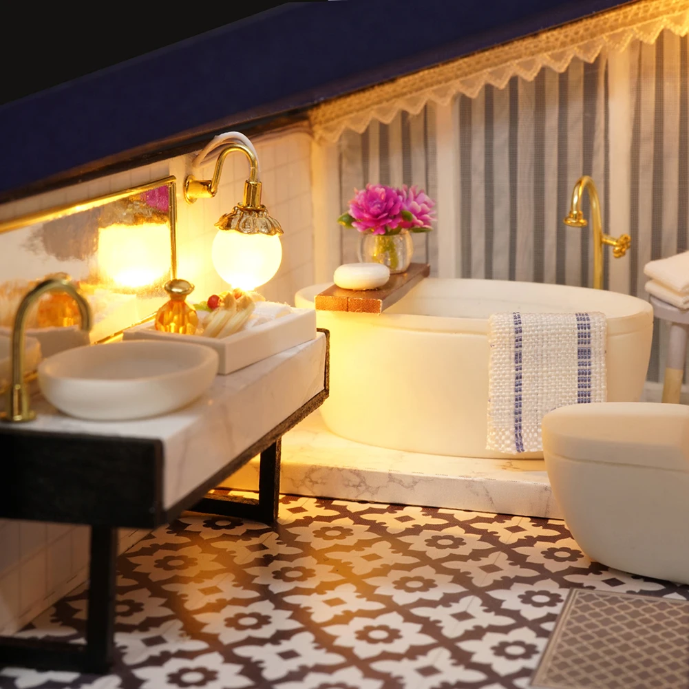Набор для кукольного домика DIY с мебельными светодиодными лампами, миниатюрное здание для маленького дома, деревянные игрушки для детей, подарок для взрослых