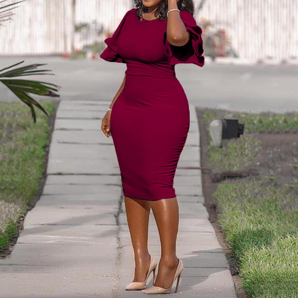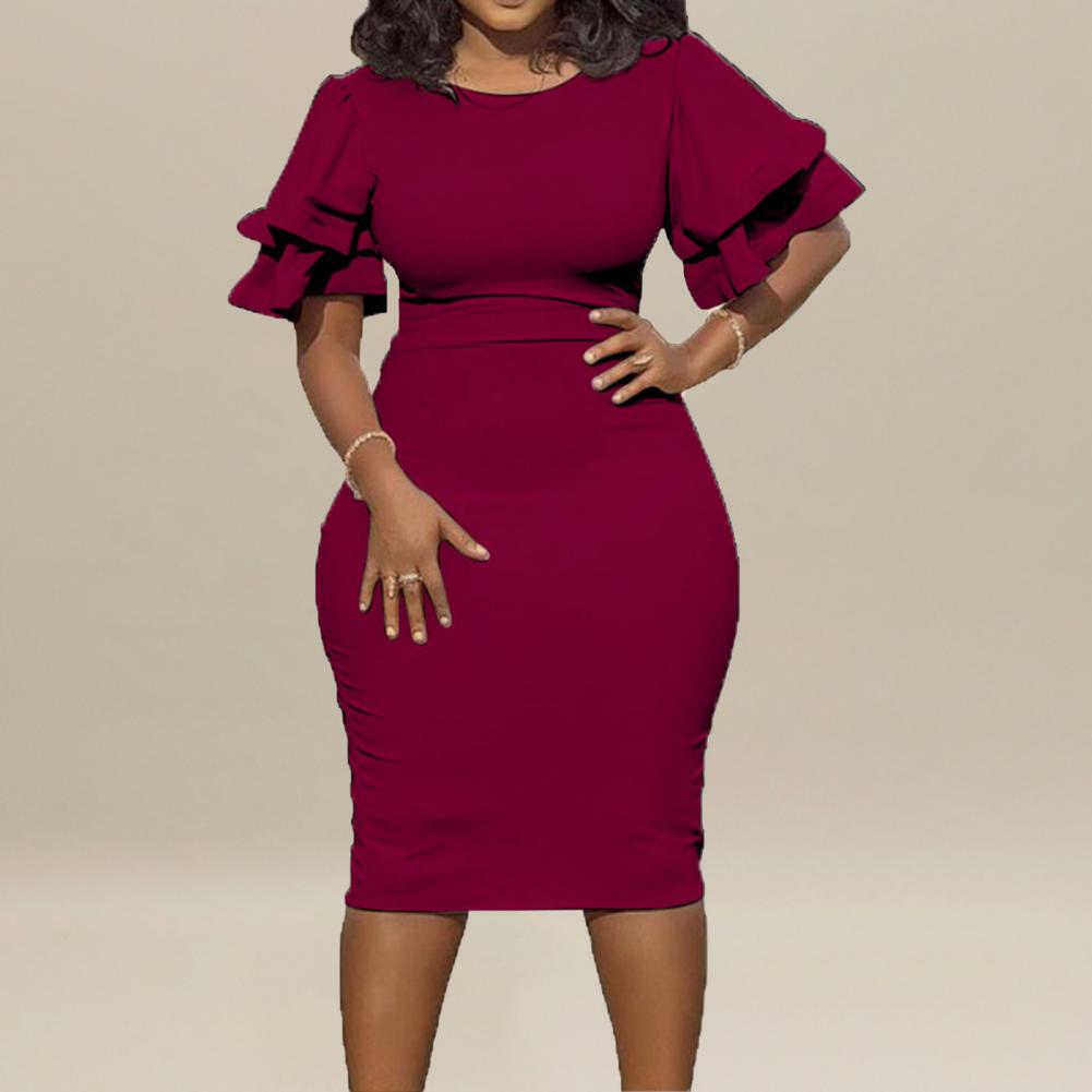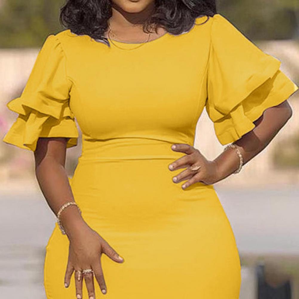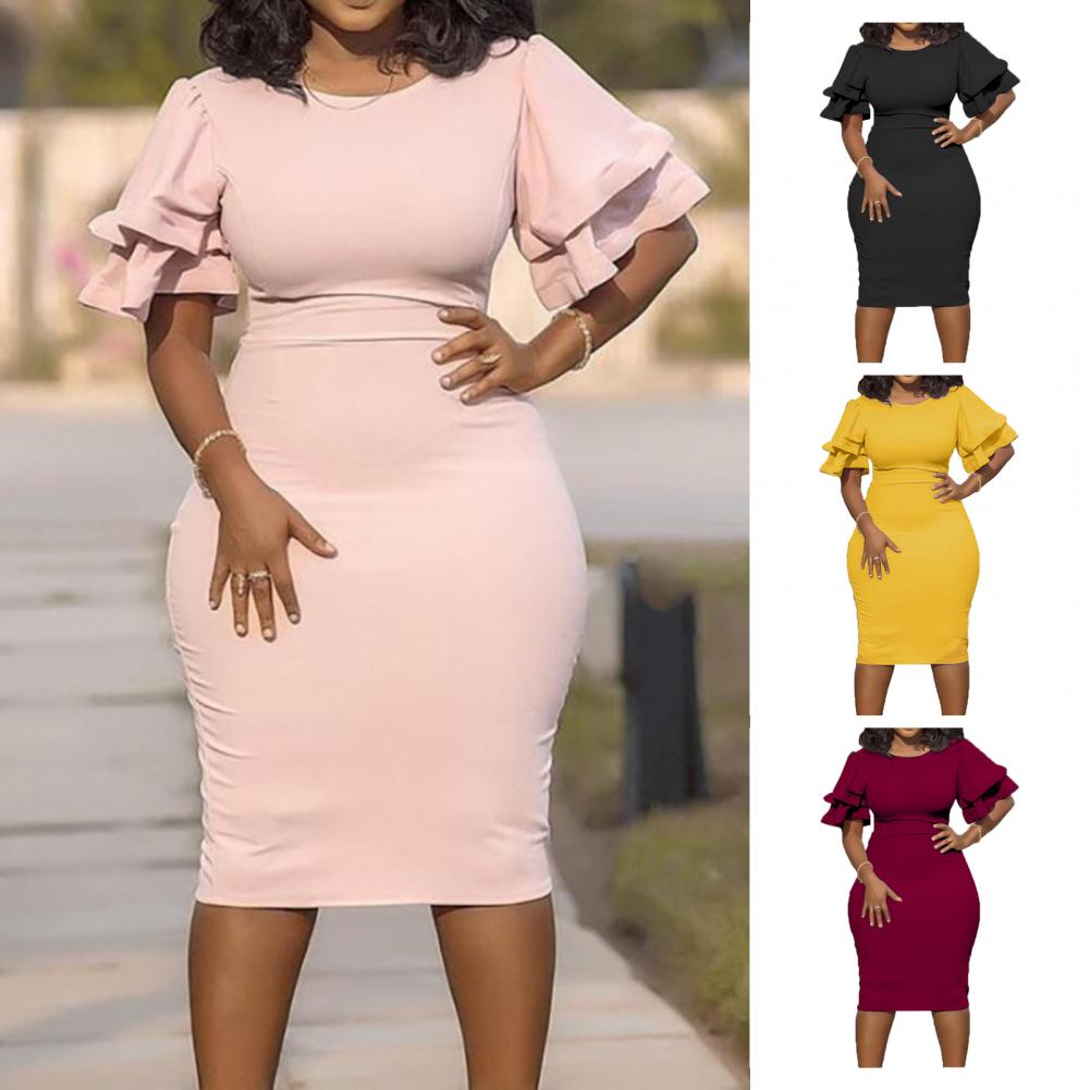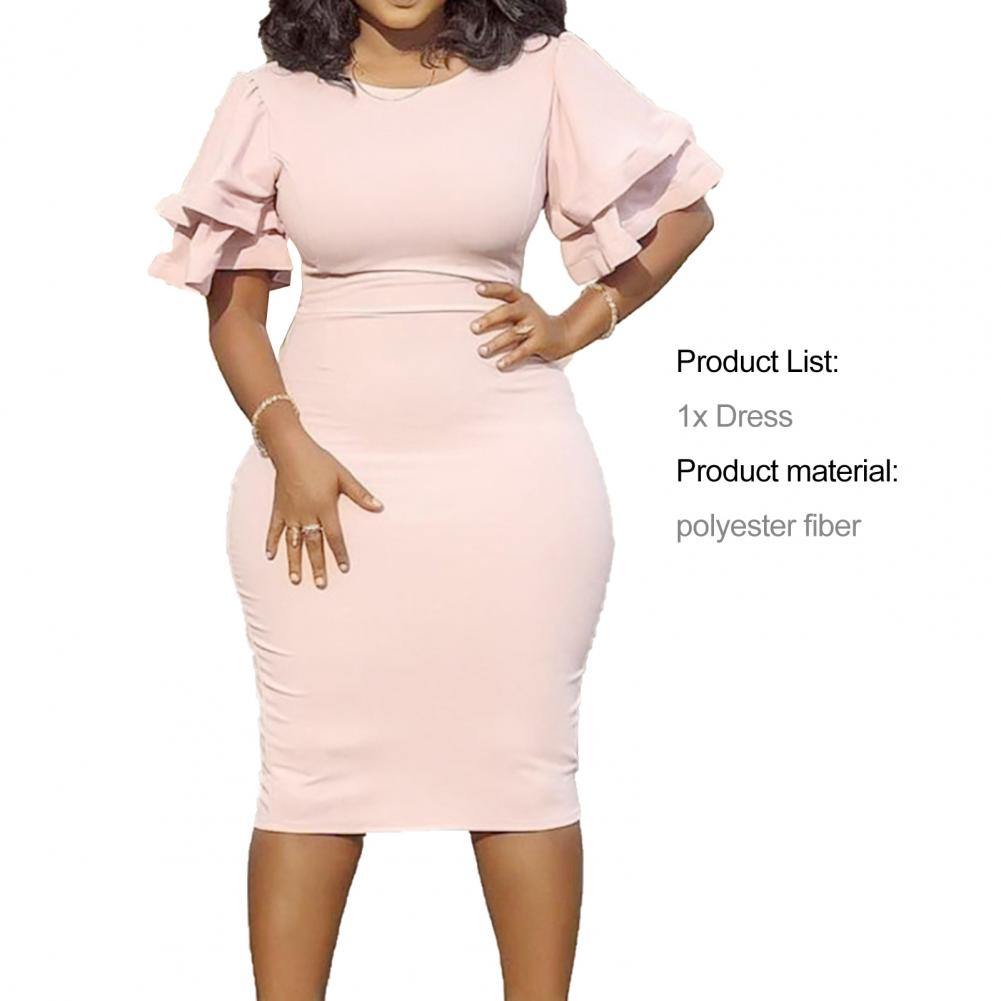 Простое платье с круглым вырезом и оборками на рукавах, что делает вас очень повседневным и шикарным. Повседневное платье с облегающей одеждой может значительно подчеркнуть вашу стройную и элегантную форму тела.