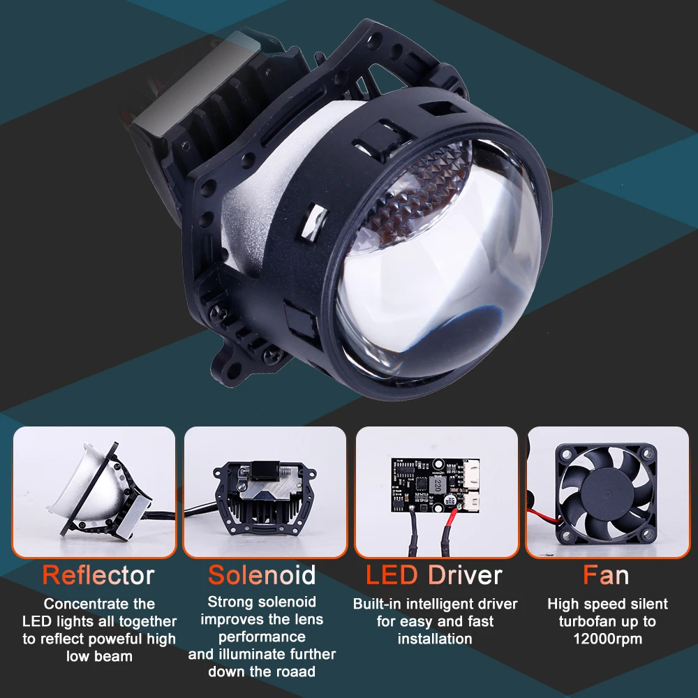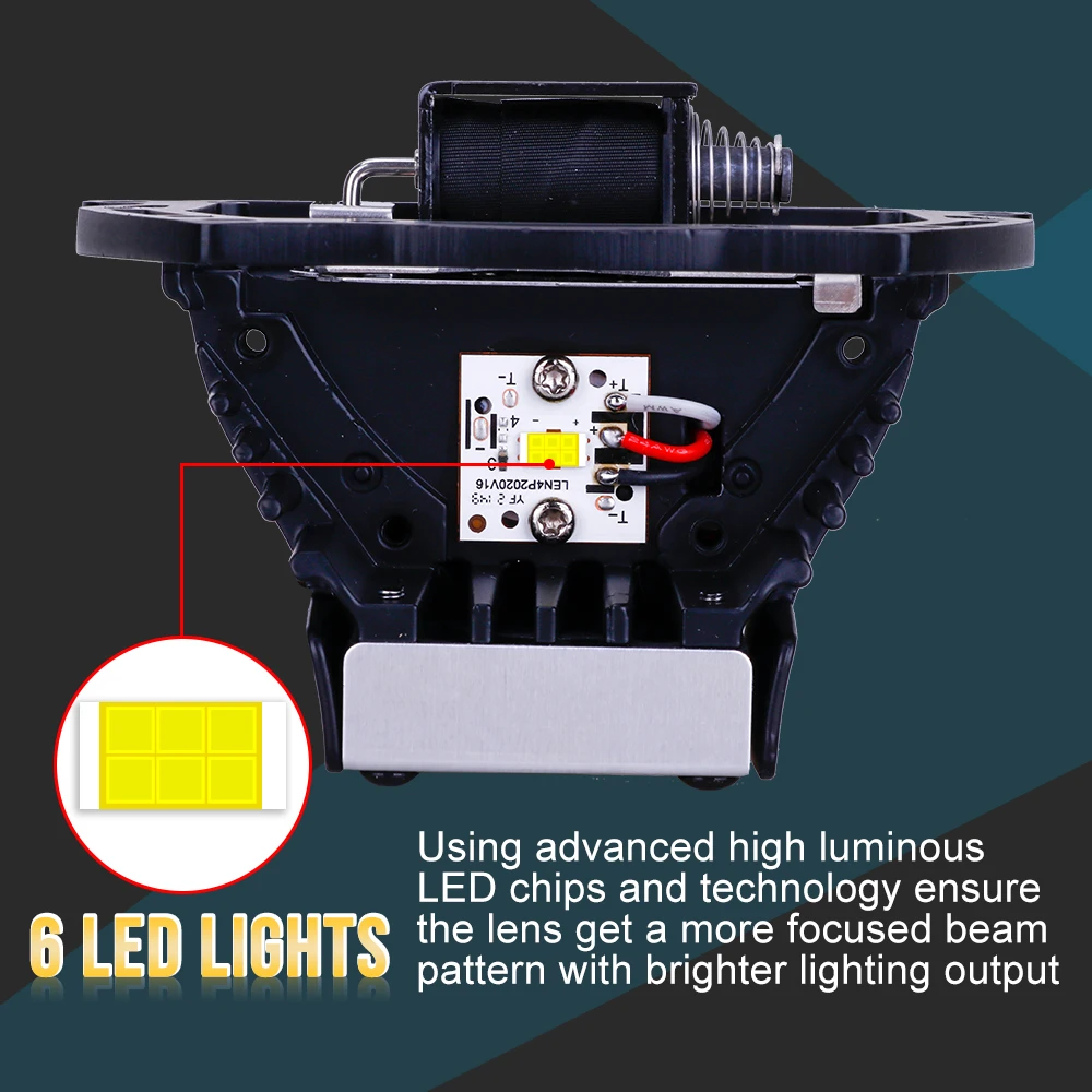 Светодиодный Чипы: 6 светодиодный при высоких ближнего и дальнего света, используя передовые технологии высокий показатель световой светодиодный чипов и технологии обеспечивают объектив получить более сфокусированный луч узор с ярче выходной сигнал освещения.