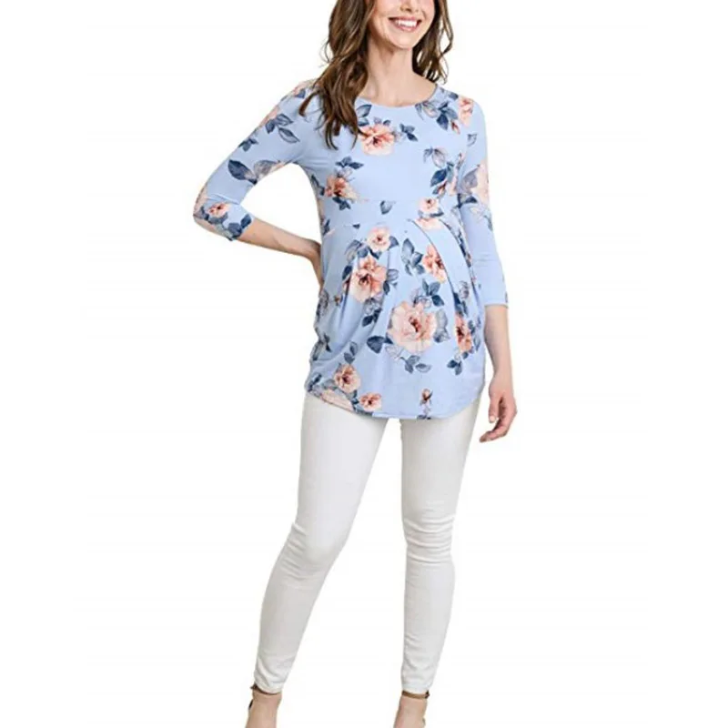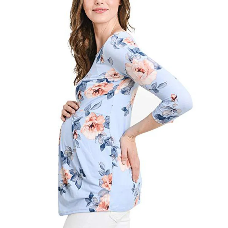 Летние топы для беременных, женские футболки с длинным рукавом 3/4, модные футболки для беременных, элегантные женские топы, Милая женская одежда