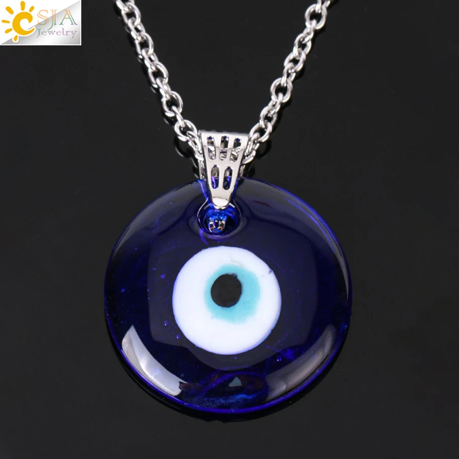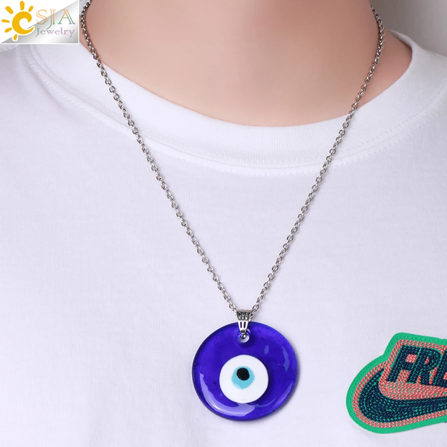 CSJA, синее ожерелье от сглаза для женщин, турецкий кулон от сглаза, ожерелье из нержавеющей стали, на удачу, очаровательное защитное ювелирное изделие H001