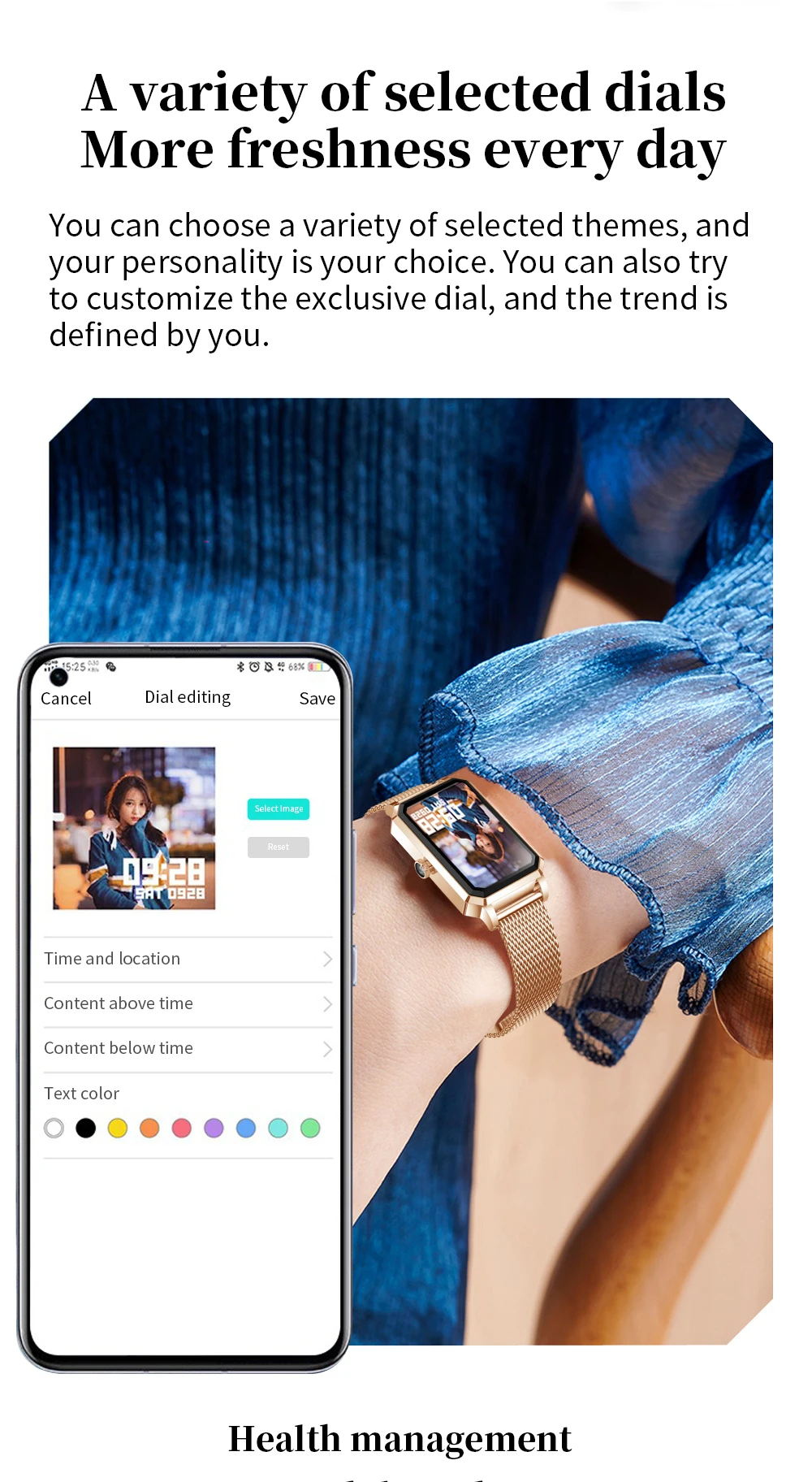 2. Монитор здоровья: пульс/кровяное давление/кислород в крови/Обнаружение сна (время сна, качество сна)/напоминание о сидячем положении/менструальный период