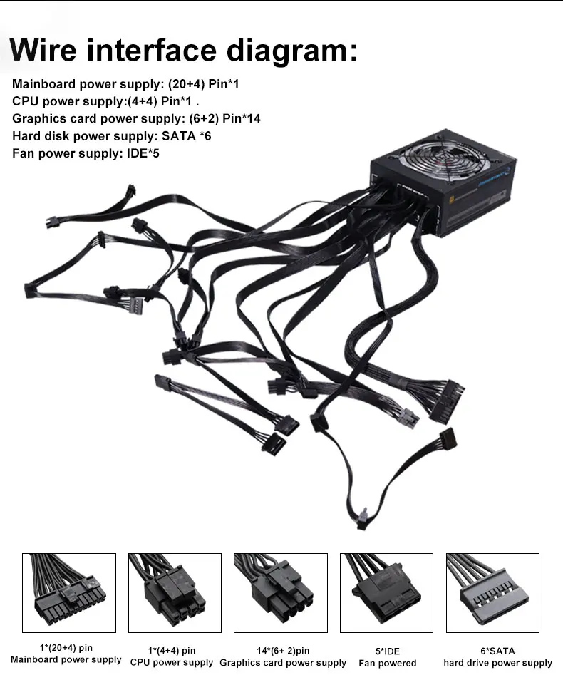 Полный модульный блок питания ATX Питание Красочные 2000 Вт ETH BTC горнодобывающая промышленность Питание Шахтер PSU 110V 220V