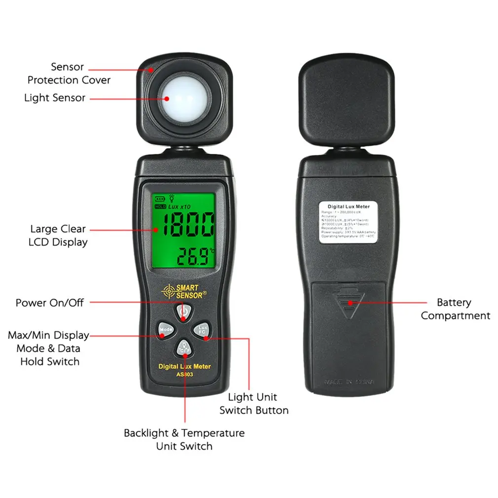 1 x смарт-датчик AS803 ЖК-дисплей цифровой Люкс метр