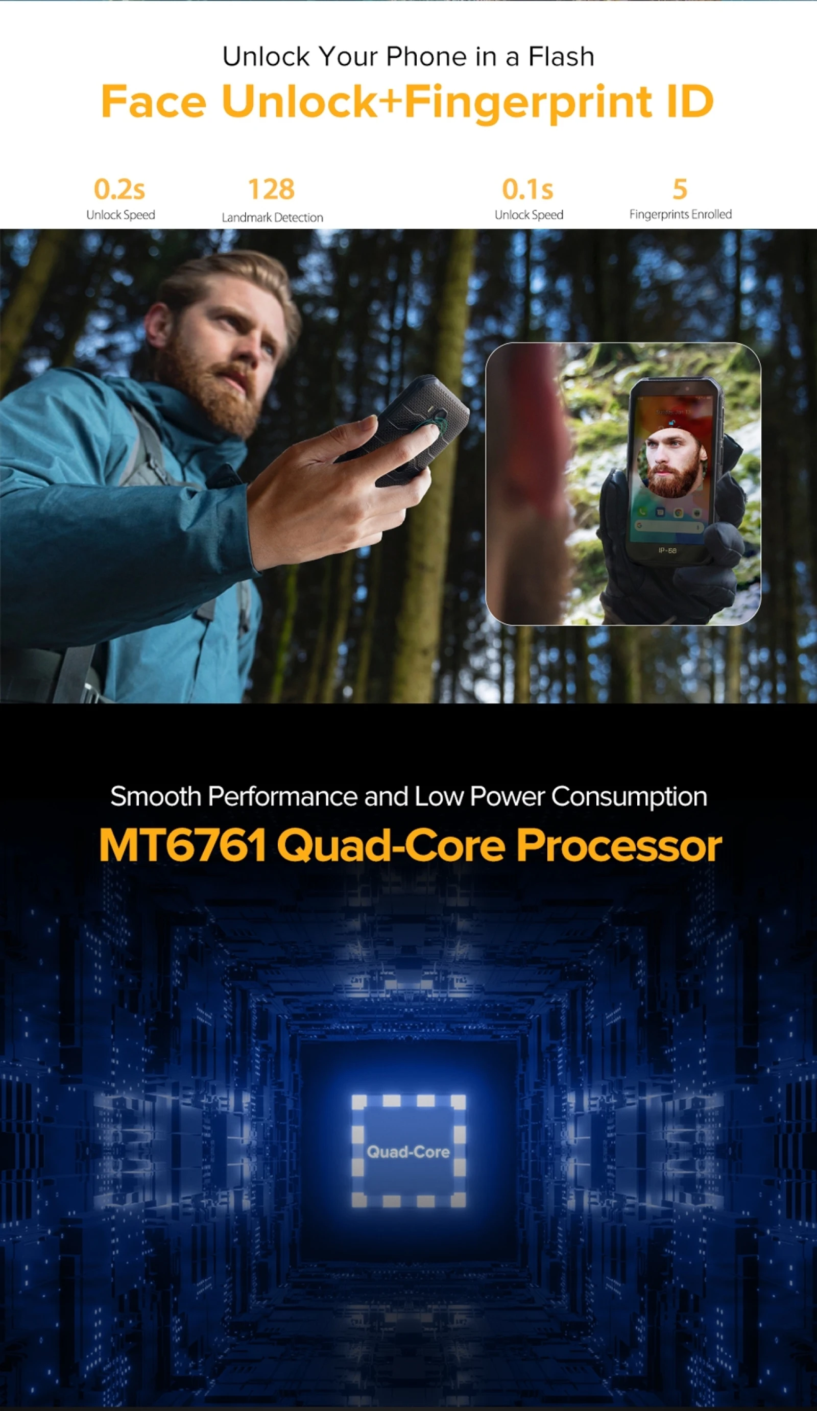 1. MTK Helio A20 MT6761VWE 4 ядра 64-бит до 1,8 ГГц Процессор, хорошая производительность, работает быстро и работать гладко.