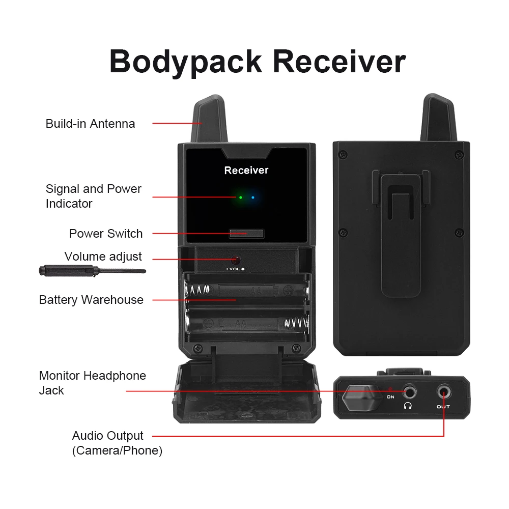 Приемник с 3,5 мм интерфейс, поставляется с двумя 3,5 мм кабель, он может работать с вашим ноутбуком/PC/DSLR Камера/усилитель/DV/видеокамеры/смарт-телефон/смеситель для кухни и т. д.