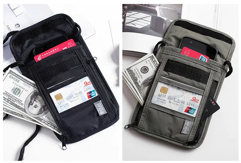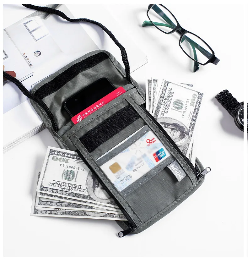 1 Pcs Waterproof RFID Nylon storage bag Travel document Card passport Bag Neck Wallet Money Document Card Passport Pouch