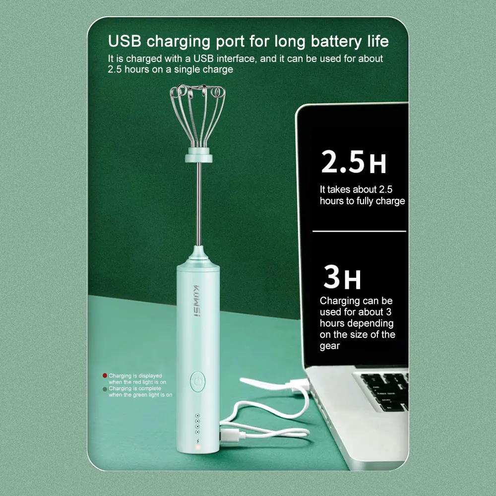 Электрический Ручной Миксер с зарядкой от Usb для молока с дисплеем питания, 3 устройства регулировки скорости и 3 головки для смешивания кофе, яиц, молока