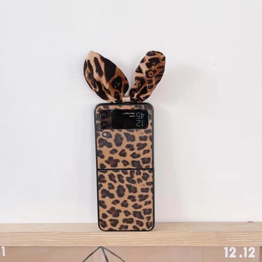 Женский сексуальный чехол для телефона с заячьими ушками зебры леопарда для Samsung Galaxy Z Flip 3 5G, симпатичный жесткий чехол из искусственной кожи для Z Flip3
