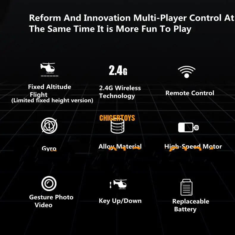 Основные компоненты усилены, «tccicadas» производительность полета увеличивается в два раза, и операция является более стабильной. ①Сплав усилен, а оправа жесткая и анти-осенняя ②высокопрочные лезвия больше не повреждаются. ③ Высокопрочная балансировочная планка является гибкой и не легко ломается.