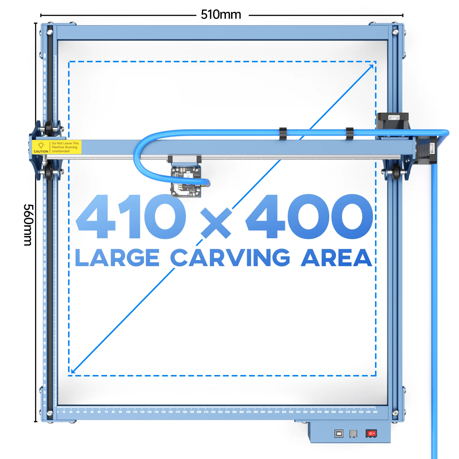 Квадратная измерительная линейка:Ось X и ось Y содержат точные масштабные линии, что удобно для быстрого измерения размера гравировальных объектов. Интервал гравировки большой площади 400x400 мм может удовлетворить ваши различные потребности в гравировке.