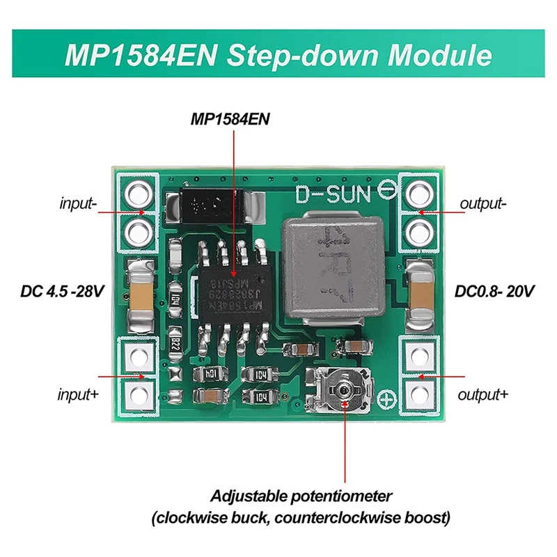 Акция! 20 шт Мини MP1584EN DC-DC понижающий преобразователь Регулируемый Питание модуль 24 В до 12 в 9V 5V 3В снижена Напряжение регулирующим