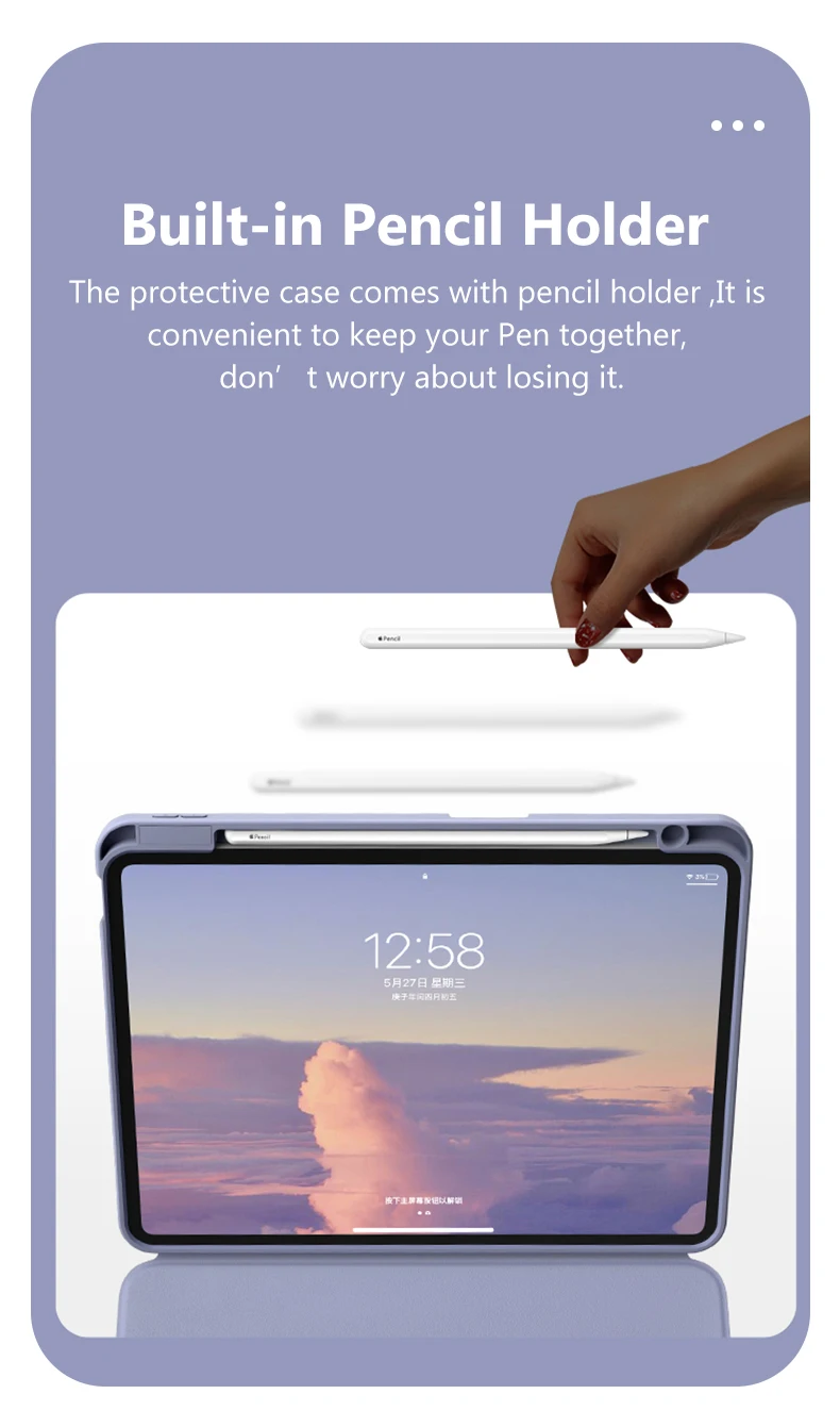 Встроенный держатель для карандашей: защитный чехол поставляется с держателем для карандашей, удобно держать ручку вместе, не беспокойтесь о потере.