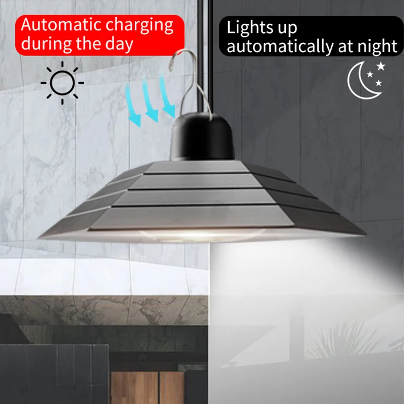 Солнечный светильник изготовлен из высококачественного АБС-пластика, с уникальным водонепроницаемым дизайном IP44, может выдерживать все виды плохой погоды, такие как дождь, снег, высокая температура, подходит для сада, двора, коридора, хранилище. Примечание: люстра работает только ночью. Если вы хотите работать в течение дня, накройте солнечные панели чем-то.