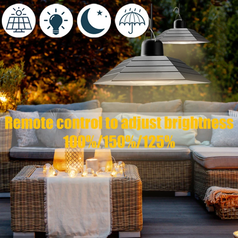 Солнечная люстра с кабелем 3 м имеет 3 уровня яркости затемнения (100%/50%/25%), вы можете регулировать яркость в соответствии с различными видами использования. В Светильник поставляется с Дистанционный пульт, который можно использовать в пределах 5 м, чтобы включить светильник вкл/выкл, регулировки яркости и установить светильник ing время Нью-Йорк (3/5/8 часов).