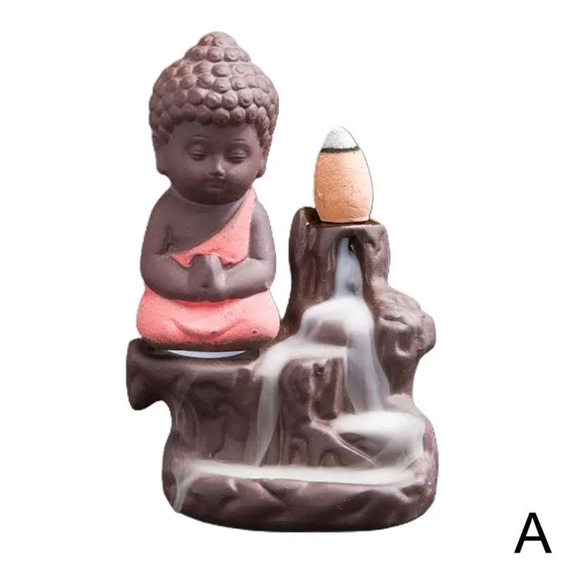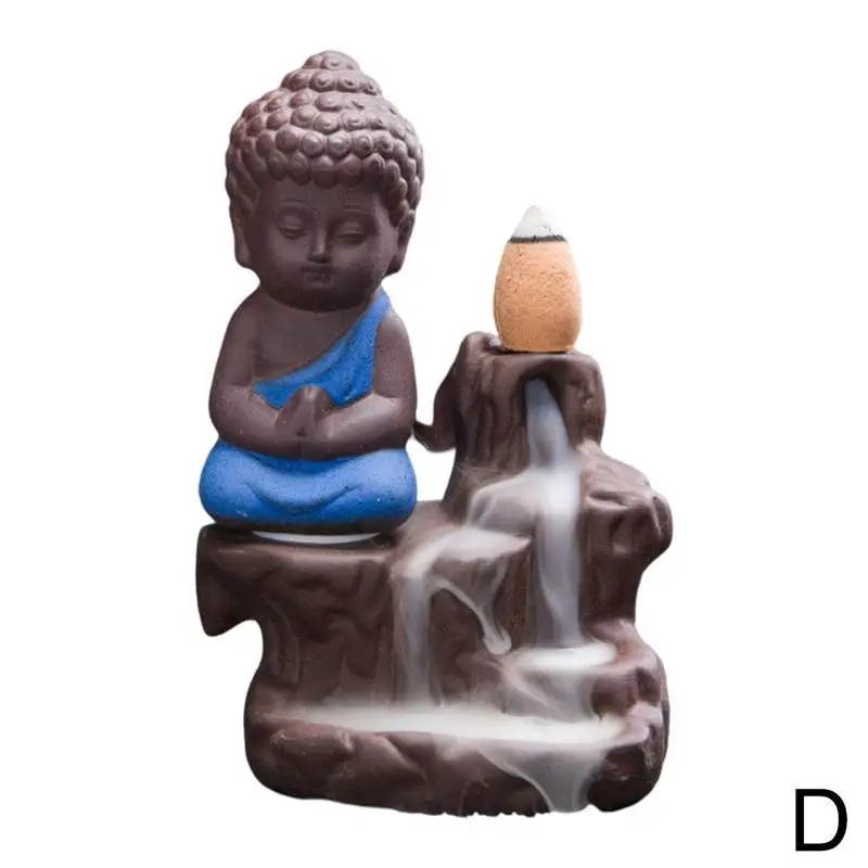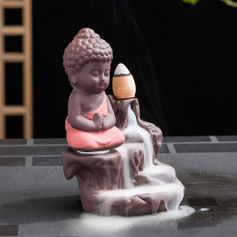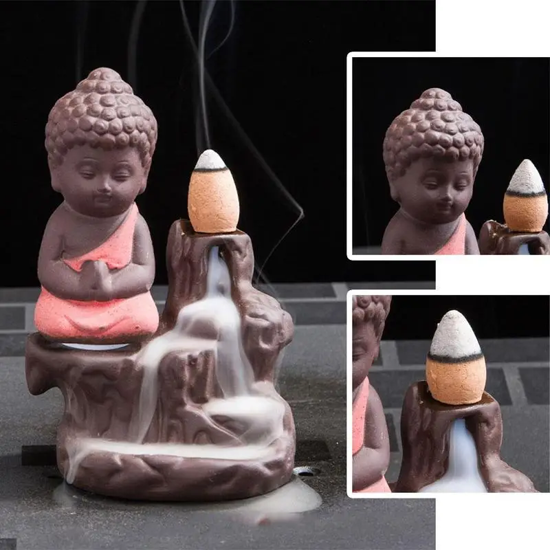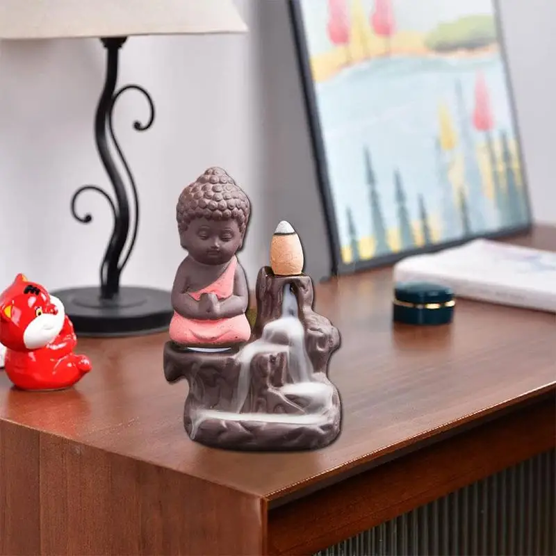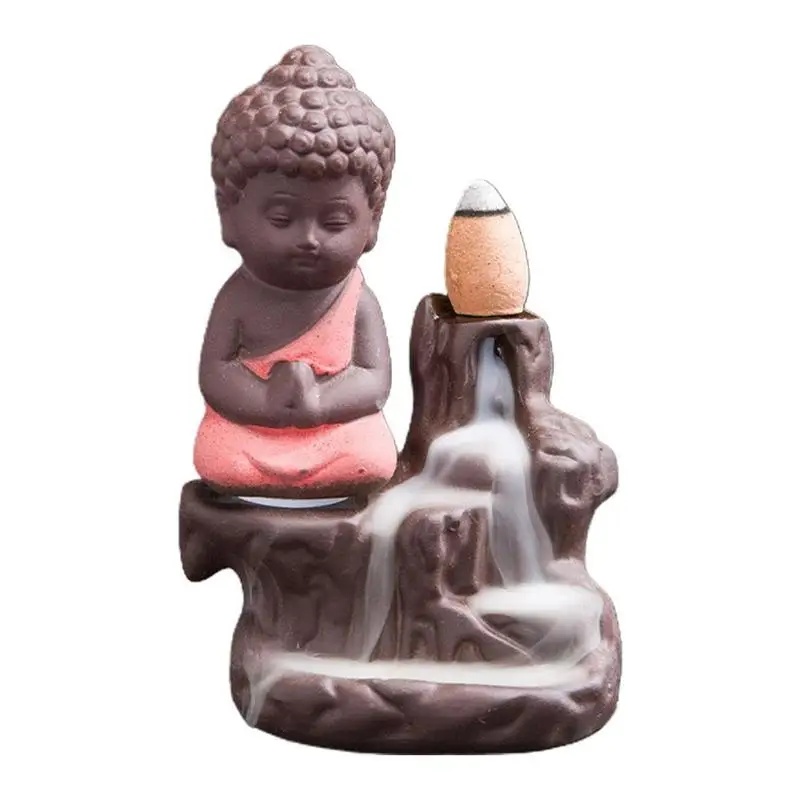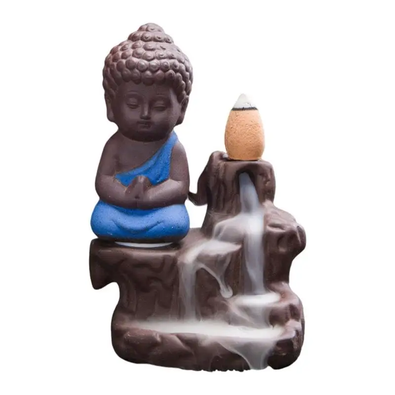 Когда в горелке горит конус ладана, следы дыма имитируют Водопад/облачный туман на вершине горы у основания фигурки