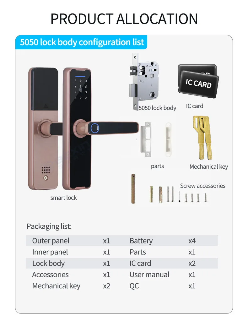Режимы разблокировки: приложение Tuya/отпечаток пальца/Пароль/смарт-карта/ключ