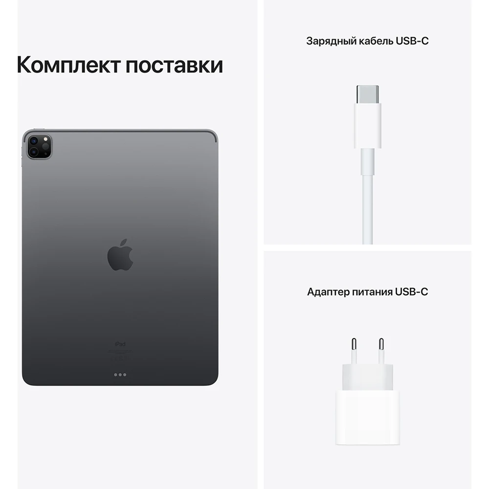 iPad Pro оснащён чипом Apple M1 — это высочайшая производительность и возможность целый день работать без подзарядки.3 Впечатляющий дисплей Liquid Retina XDR 12,9 дюйма отлично подходит для просмотра и редактирования фото и видео HDR. Модели с поддержкой сотовых сетей позволят оставаться на связи даже там, где нет Wi‑Fi.2 А благодаря фронтальной камере с функцией «В центре внимания» вы всегда будете в кадре во время видеозвонков. Передовые камеры iPad Pro и сканер LiDAR незаменимы для отличных фото, видео и дополненной реальности. Через порт Thunderbolt можно подключать высокопроизводительные аксессуары. Кроме того, вы можете пользоваться Apple Pencil для рисования, комментирования и заметок, а также клавиатурой Magic Keyboard с трекпадом для комфортного набора текста.