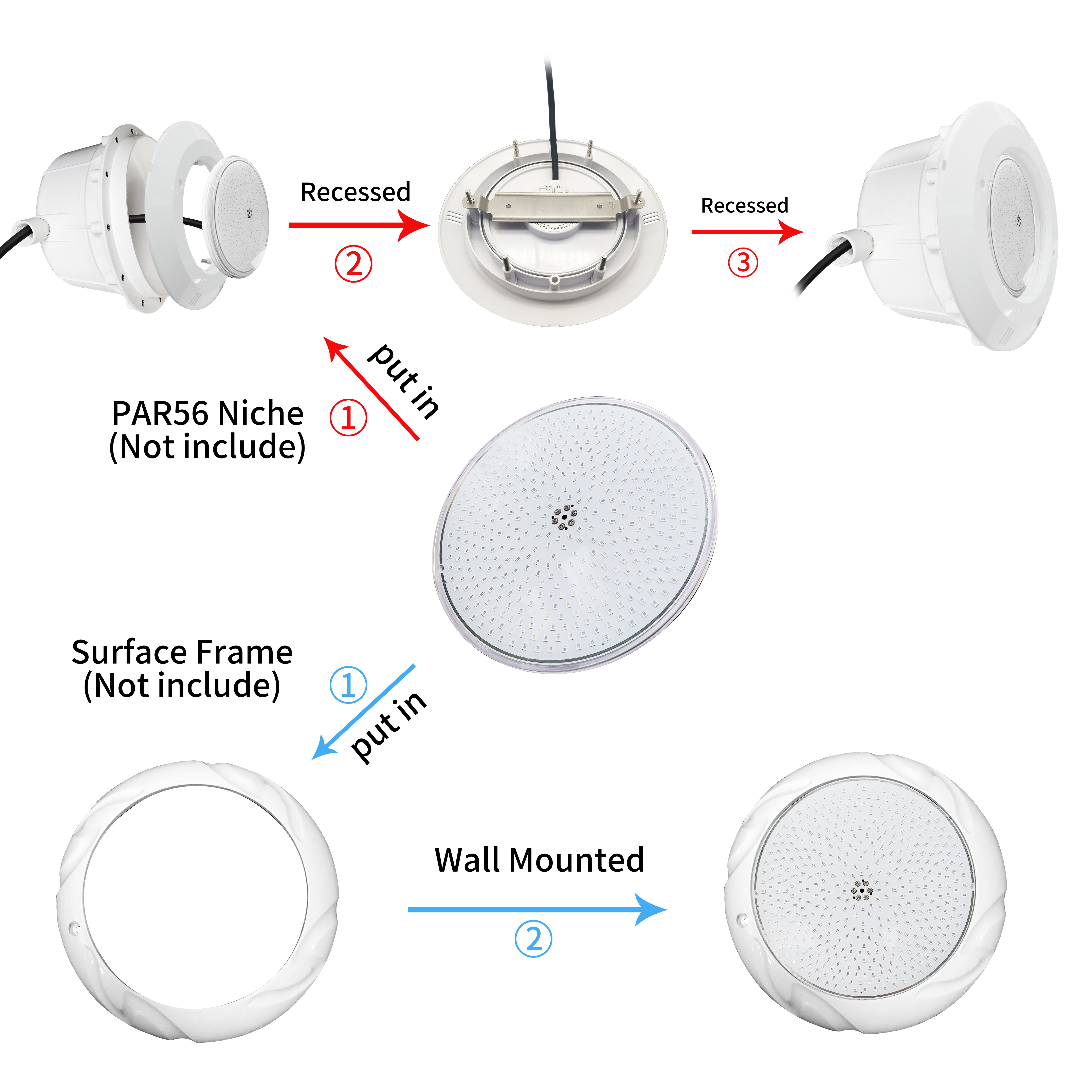 1. The Resin Filled Pool Lamp is designed to replace halogen PAR56 Bulb or LED PAR56 Bulb, so it fits the old niche, customer doesn't need to change old niche, power cable, and transformer.