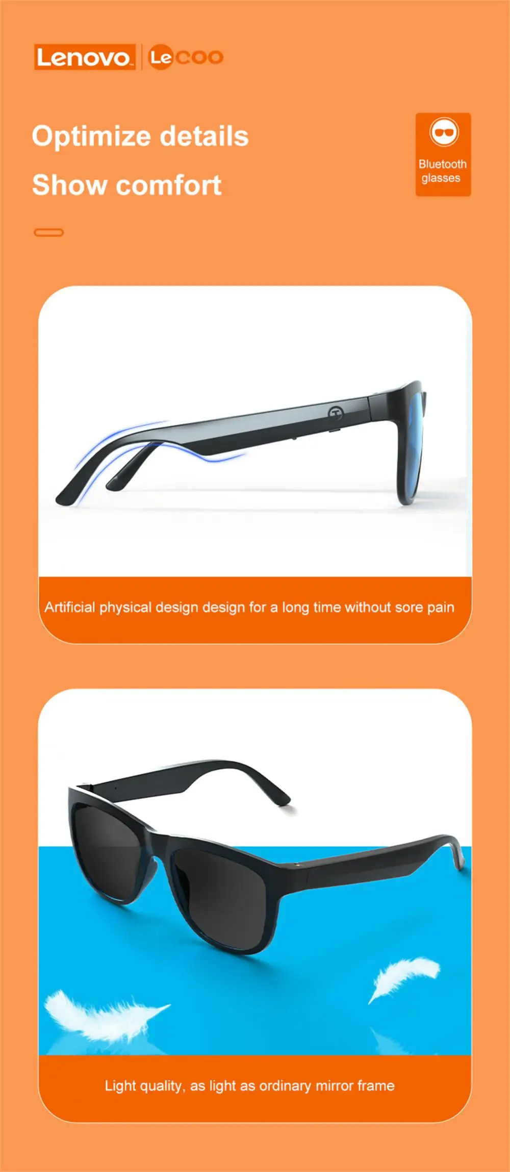 Lenovo C8 Смарт музыкальные солнцезащитные очки HIFI Качество звука беспроводной Bluetooth 5,0 наушники для вождения очки громкой связи с микрофоном