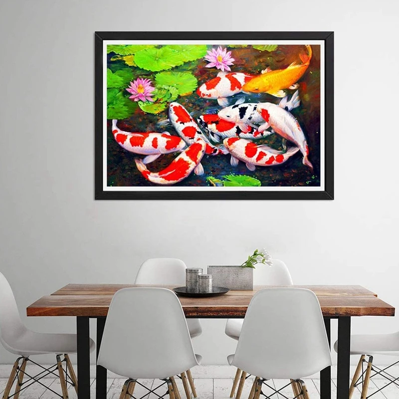 Акция! DIY Алмазная краска по номерам наборы, краска ing Koi Fish Pond Lotus Paint с бриллиантами искусство Полный дрель холст картинки