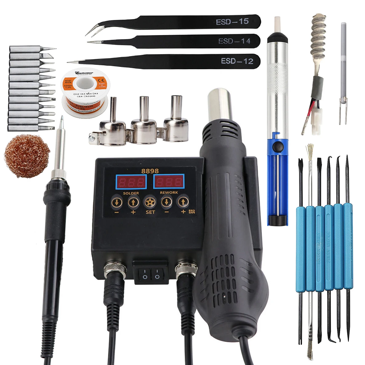 Паяльная станция 8898 цифровой дисплей 2 в 1 750 Вт сварочная паяльная станция Электрический паяльник и инструменты для ремонта горячего воздуха
