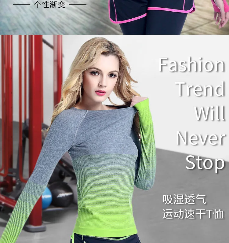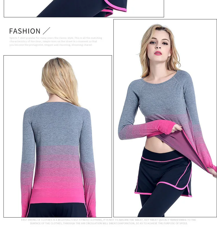 【Item No.】: Gradient running yoga fitness clothes sports short and long-sleeved T-shirt autumn and winter new