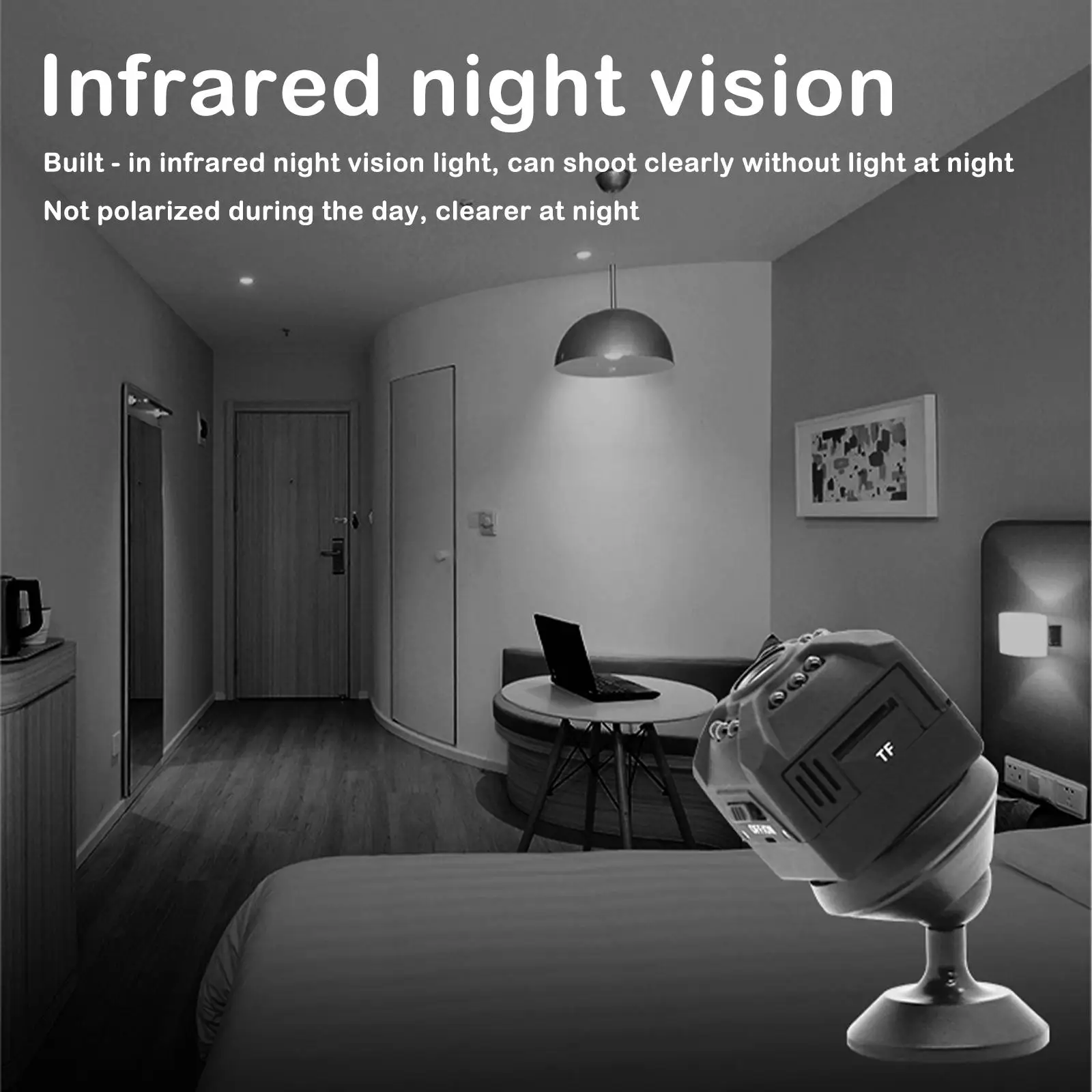 2.WiFi connection and night vision: This WiFi camera is only compatible with 2.4 GHz WiFi (5G WiFi is not supported). Automatically detect whether the infrared light should be switched on or off according to the brightness. Equipped with 6 pieces of 940 nm infrared LEDs, the mini surveillance camera supports clear visibility even in the dark with night vision up to 16 feet. Home mini security cameras are perfect for protecting your home day and night.
