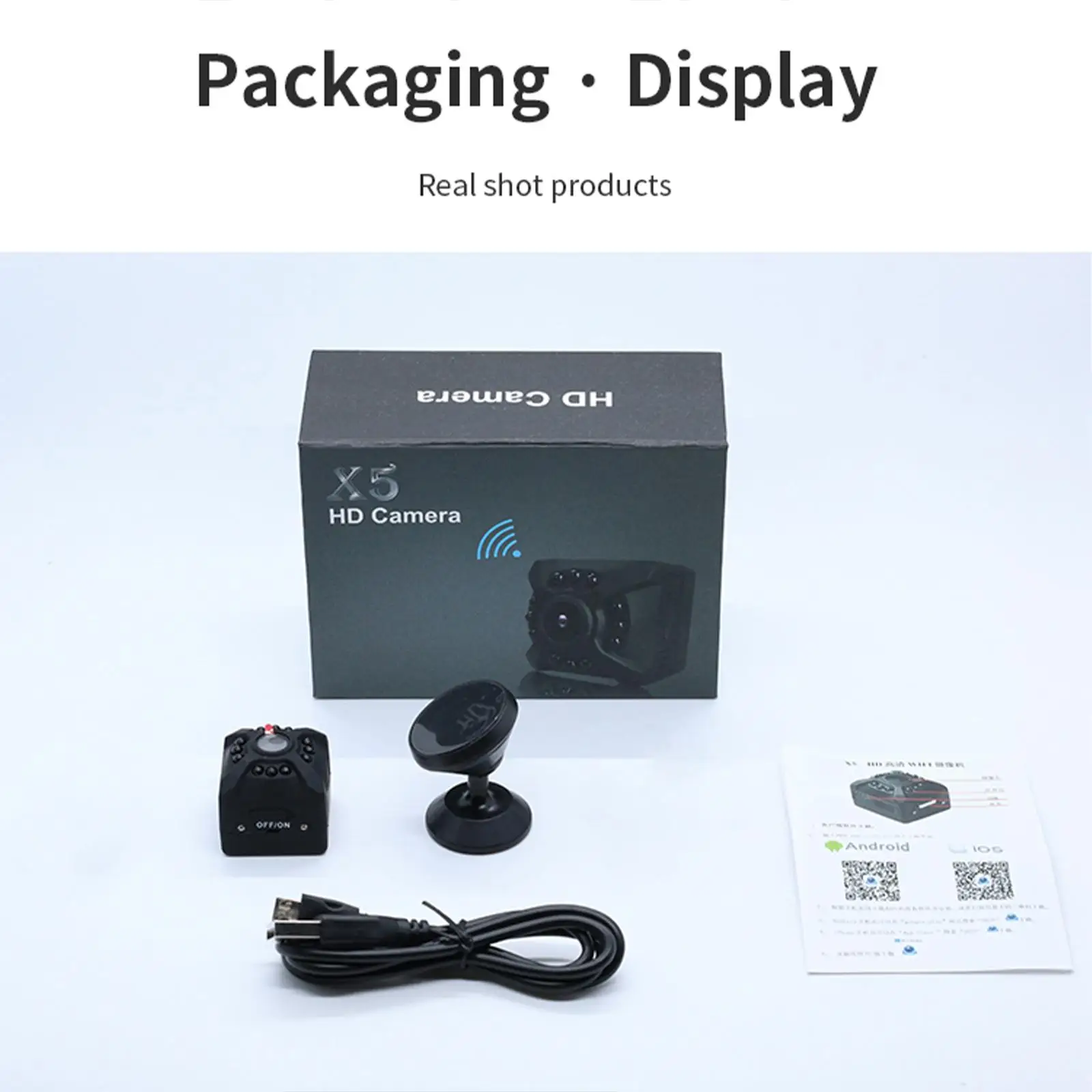 3.Real-time video and motion detection: After you have set the WiFi configuration of the mini camera (only 2.4 GHz), simply open the mobile app, you can view the real-time video of the mini camera at a glance at your home or office. When motion detection is activated, this mini WiFi camera records images and events when motion is detected, and sends you a warning.