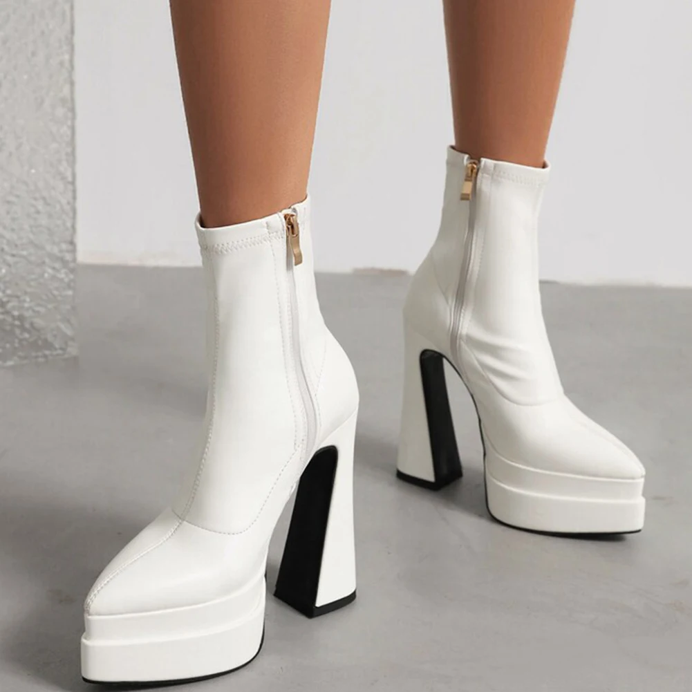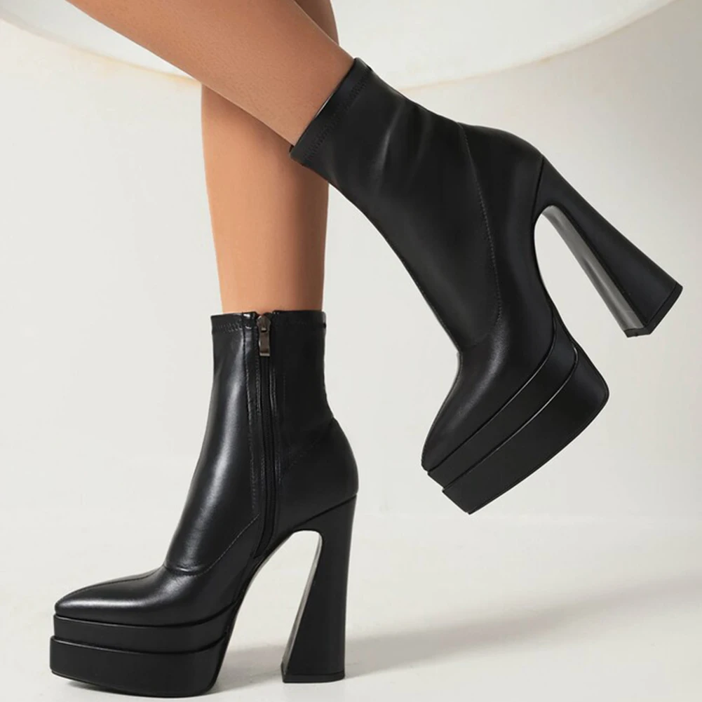 Женские ботинки с острым носком; Обувь на двойной платформе; Модные ботильоны на необычном каблуке; Сезон осень-зима; Новинка 2022 года