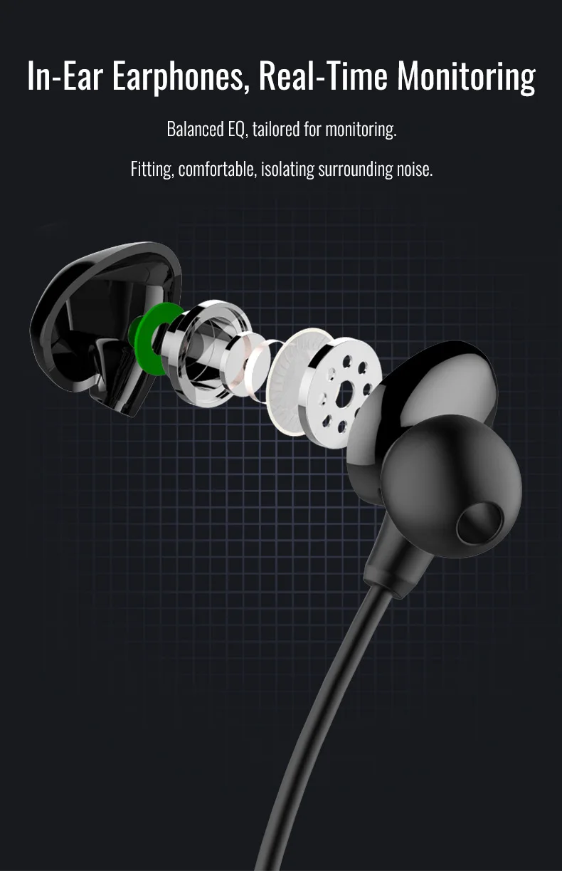 • Включает в себя мониторы в ушах, которые удобно носить и обеспечивают насыщенный тонкий звук и сильные басы.