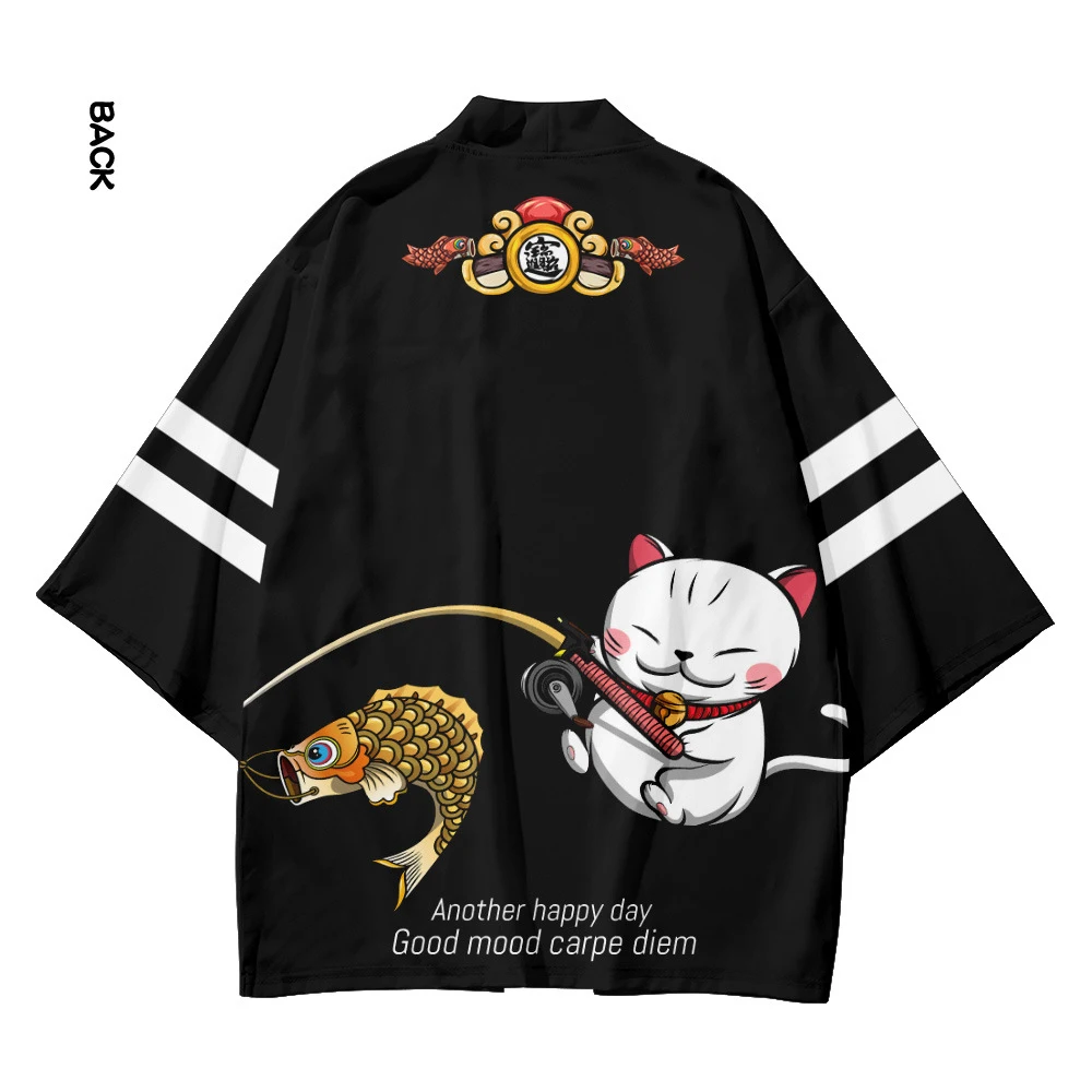Новинка 2022 года, кимоно-кардиган в японском стиле Харадзюку с изображением кота из мультфильма для пары девушек, корейский милый Универсальный купальный халат в духе колледжа с перьями, солнцезащитный крем для мужчин и женщин, xs-6xl