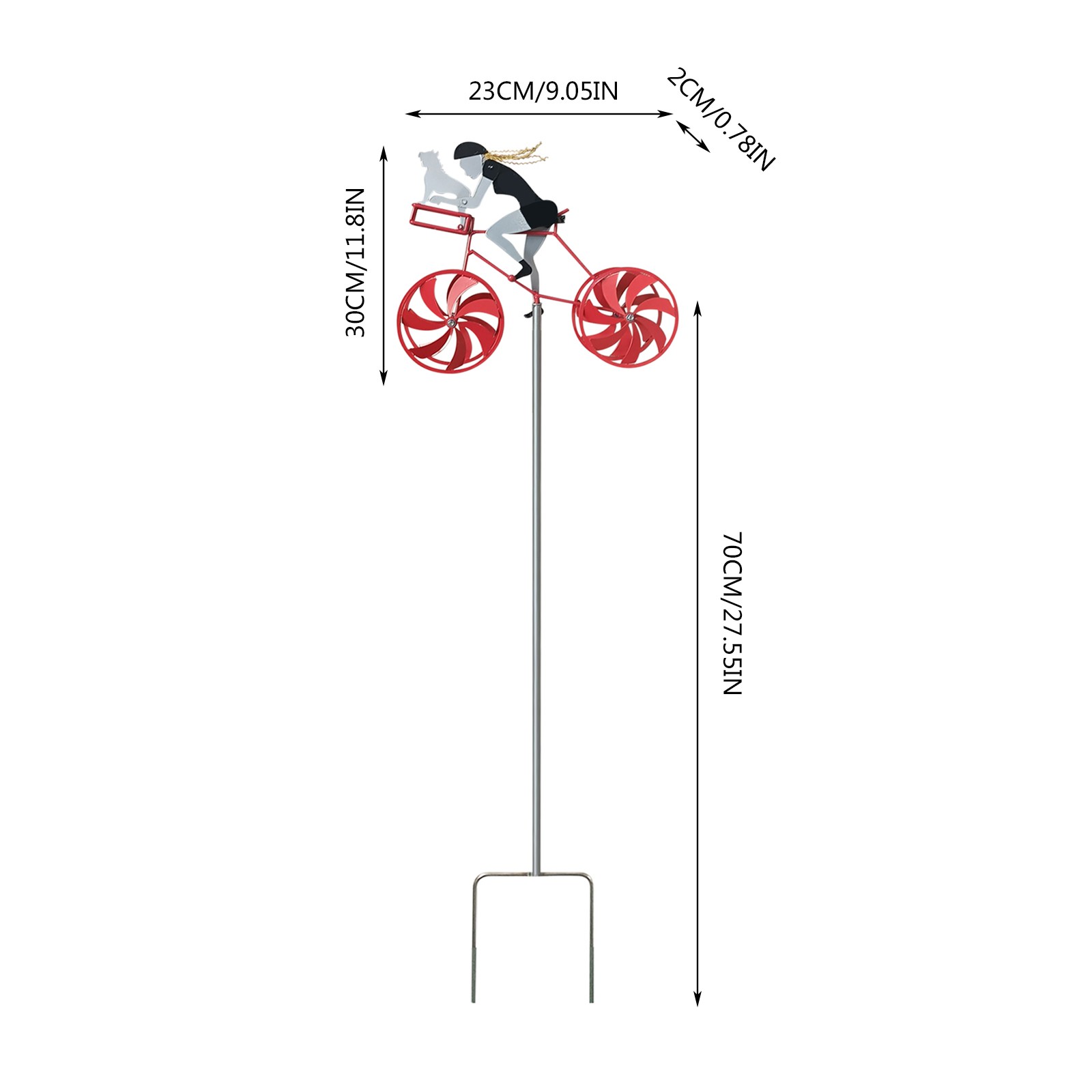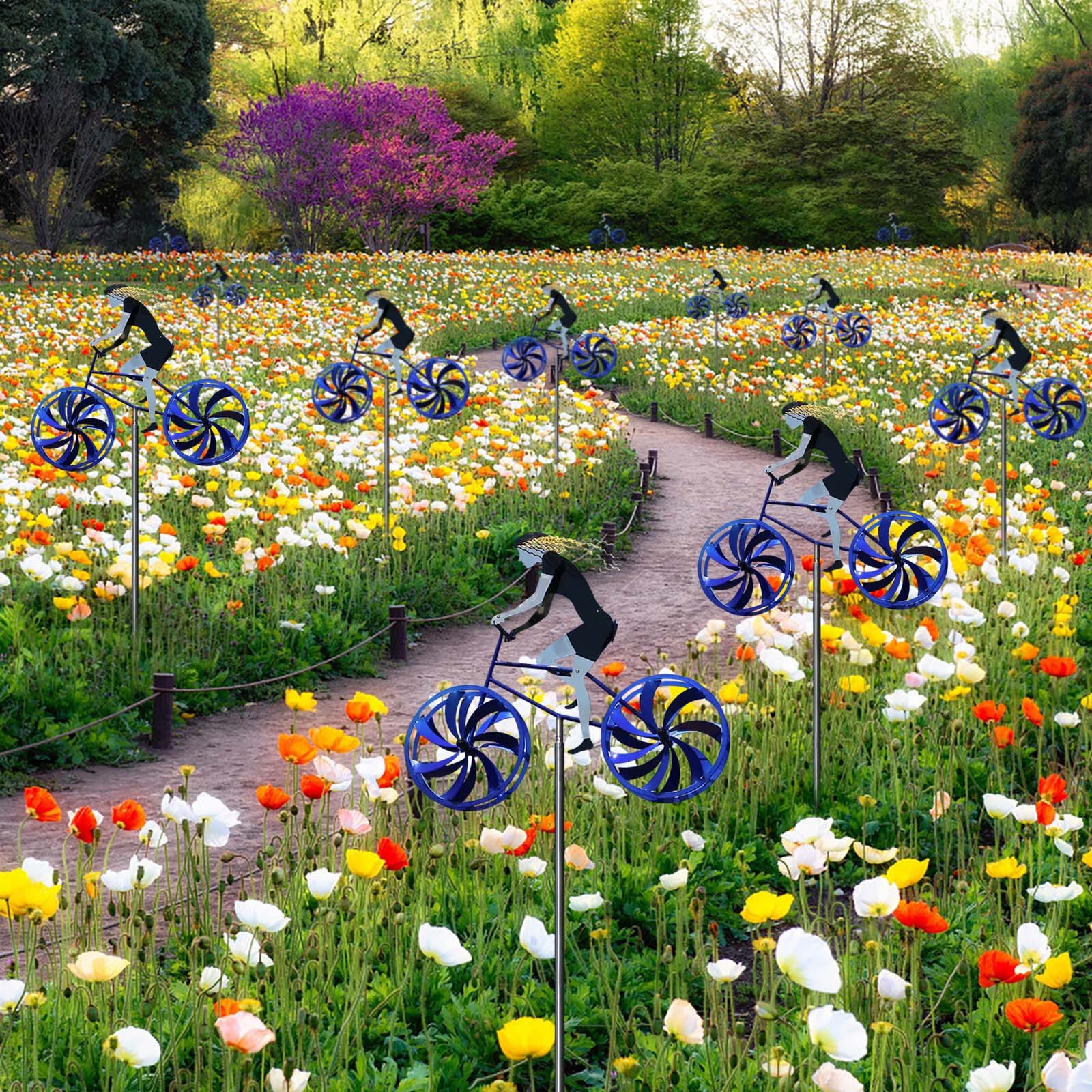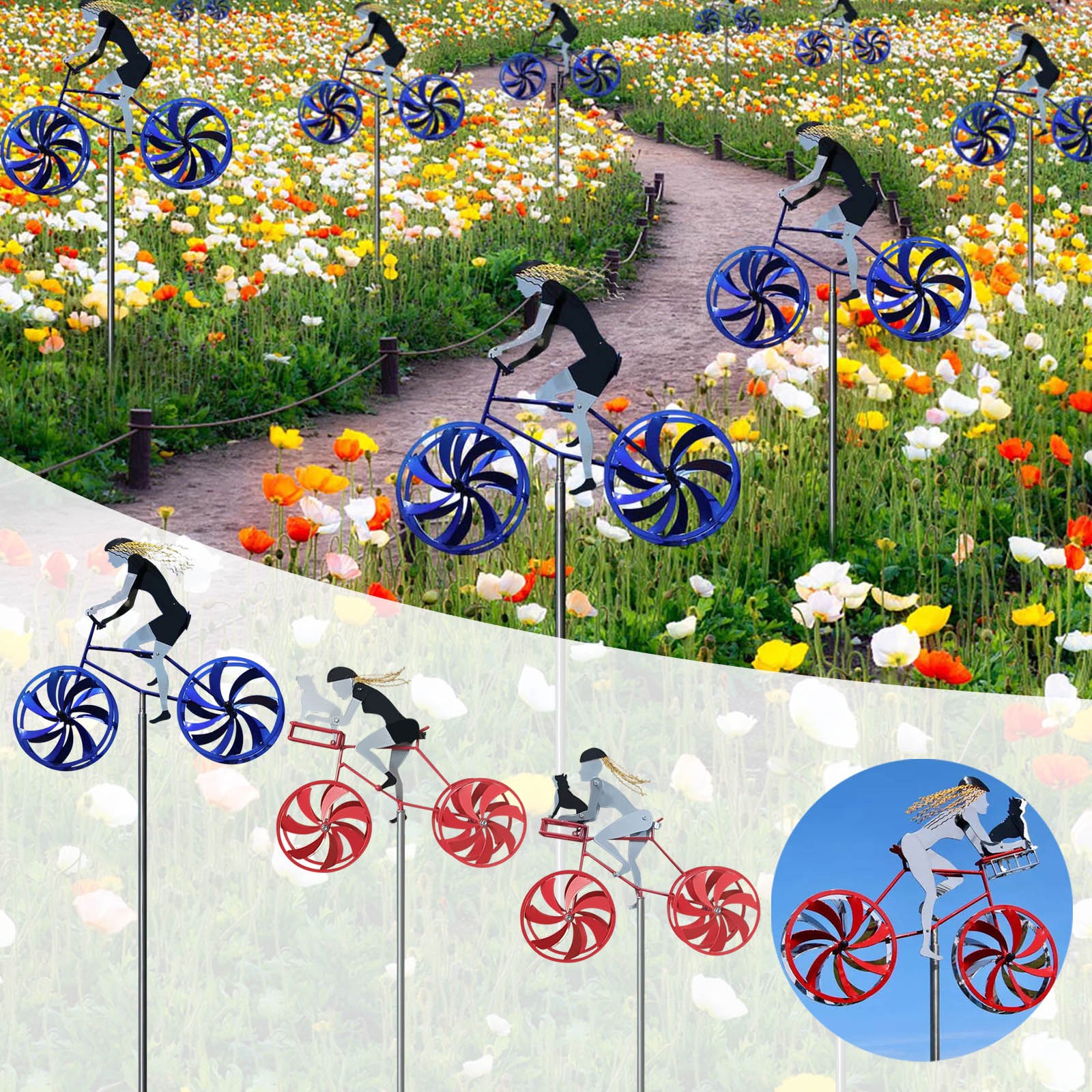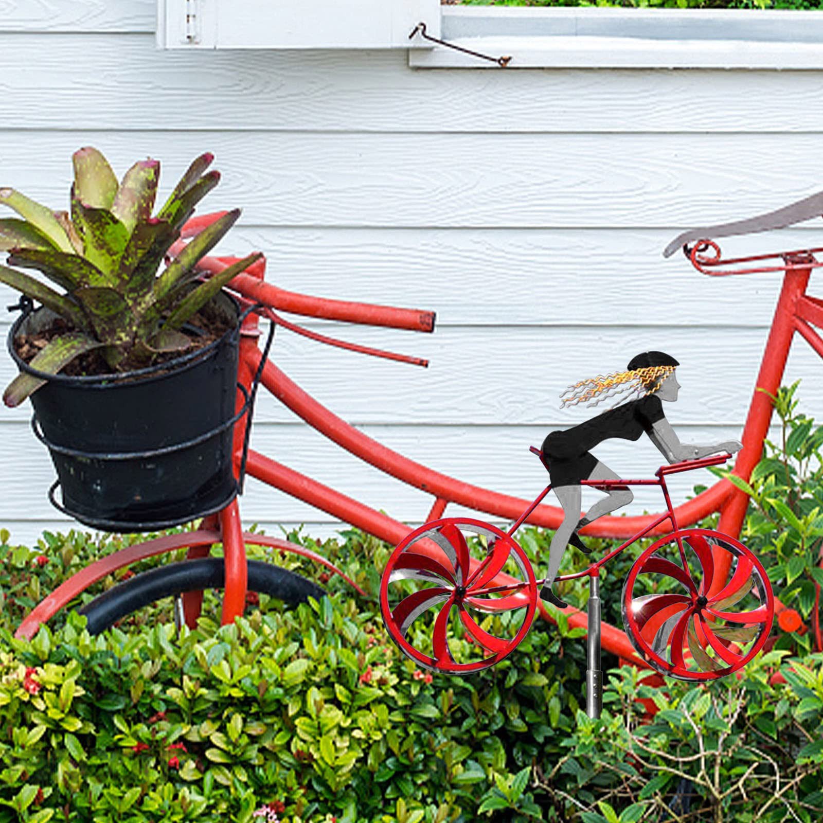 【NEW QUALITY】100% brand new quality, made of high quality metal, creative windmill, bicycle sculpture windmill beautiful decoration for garden courtyard, add movement, color and height to your landscape with this wind color metal, show amazing movement art.