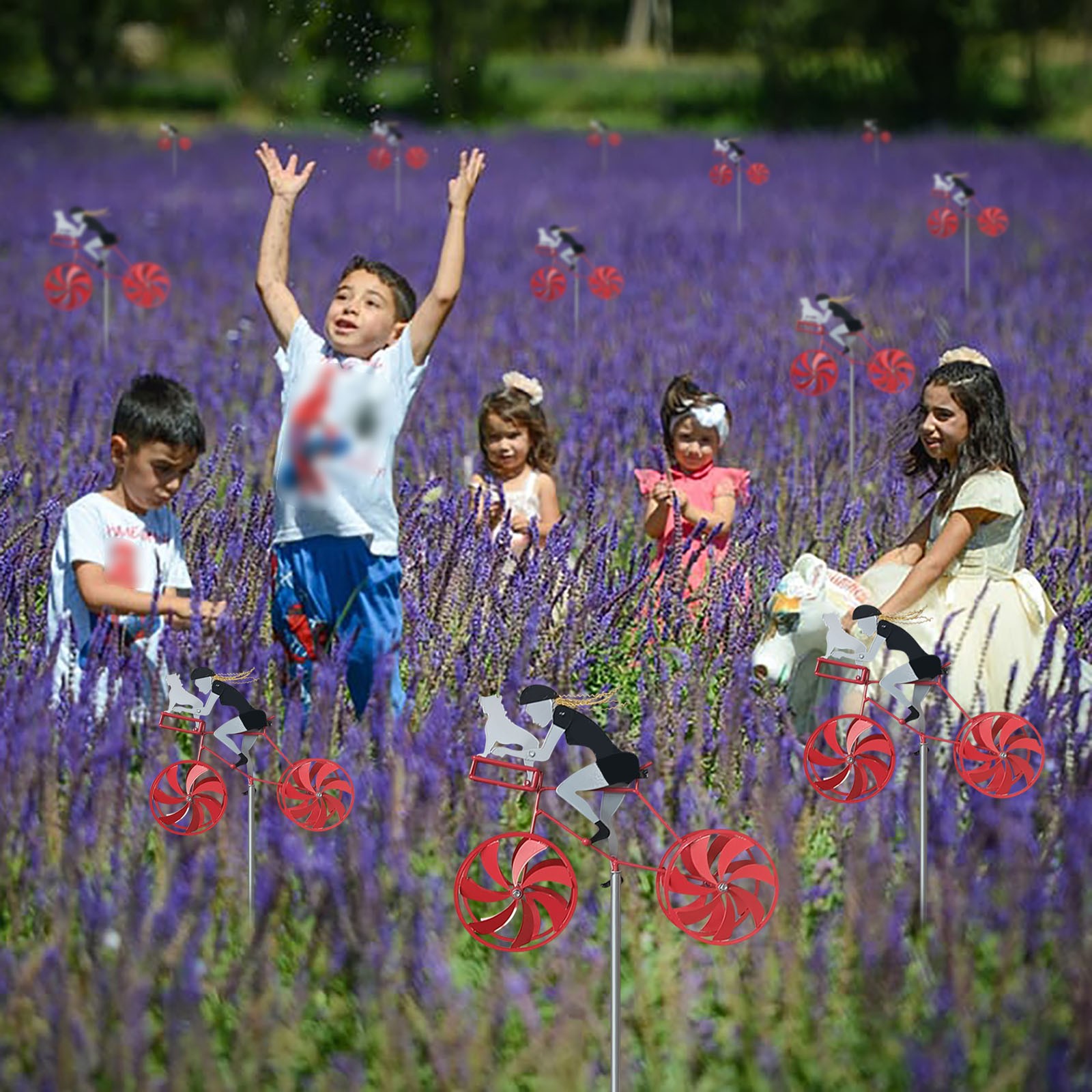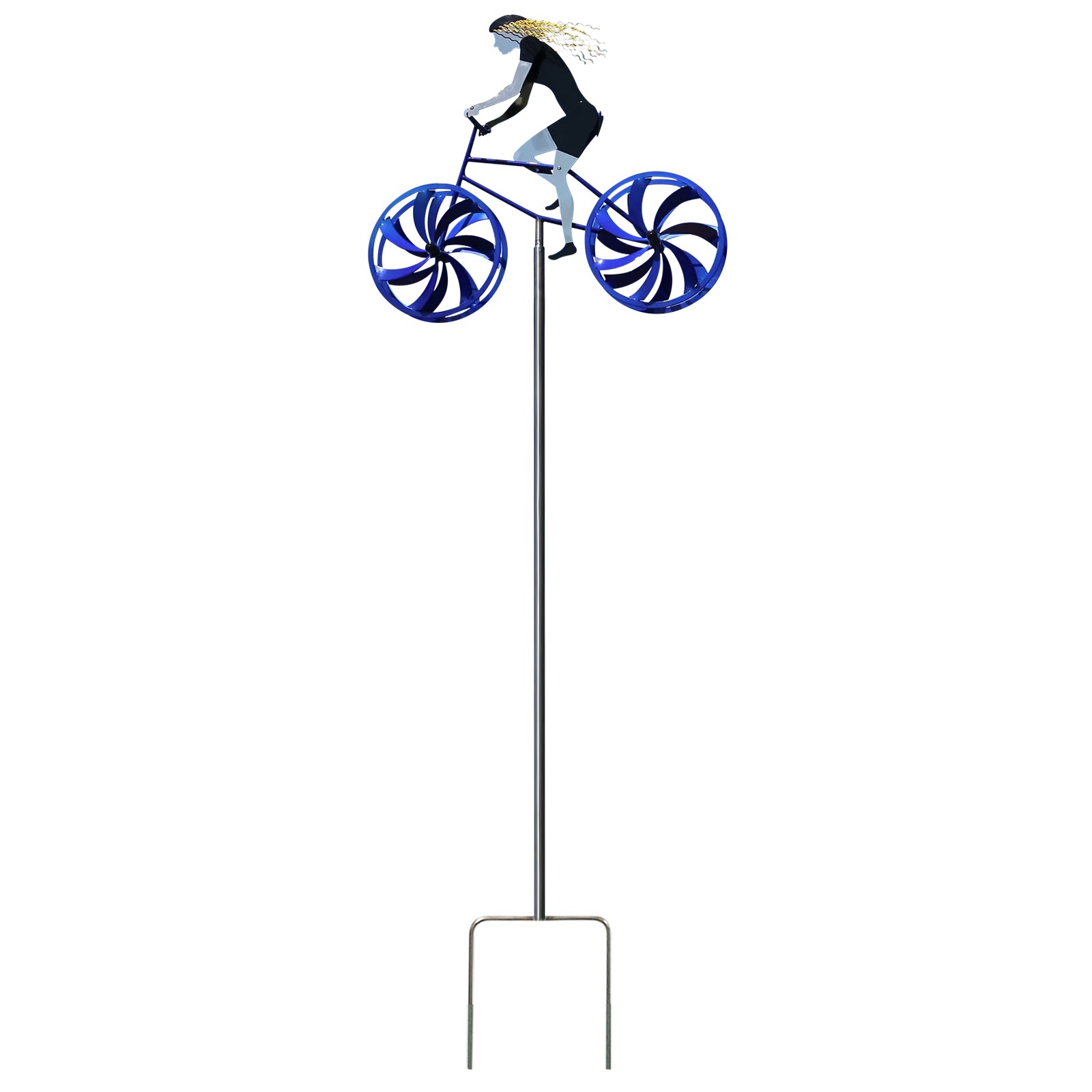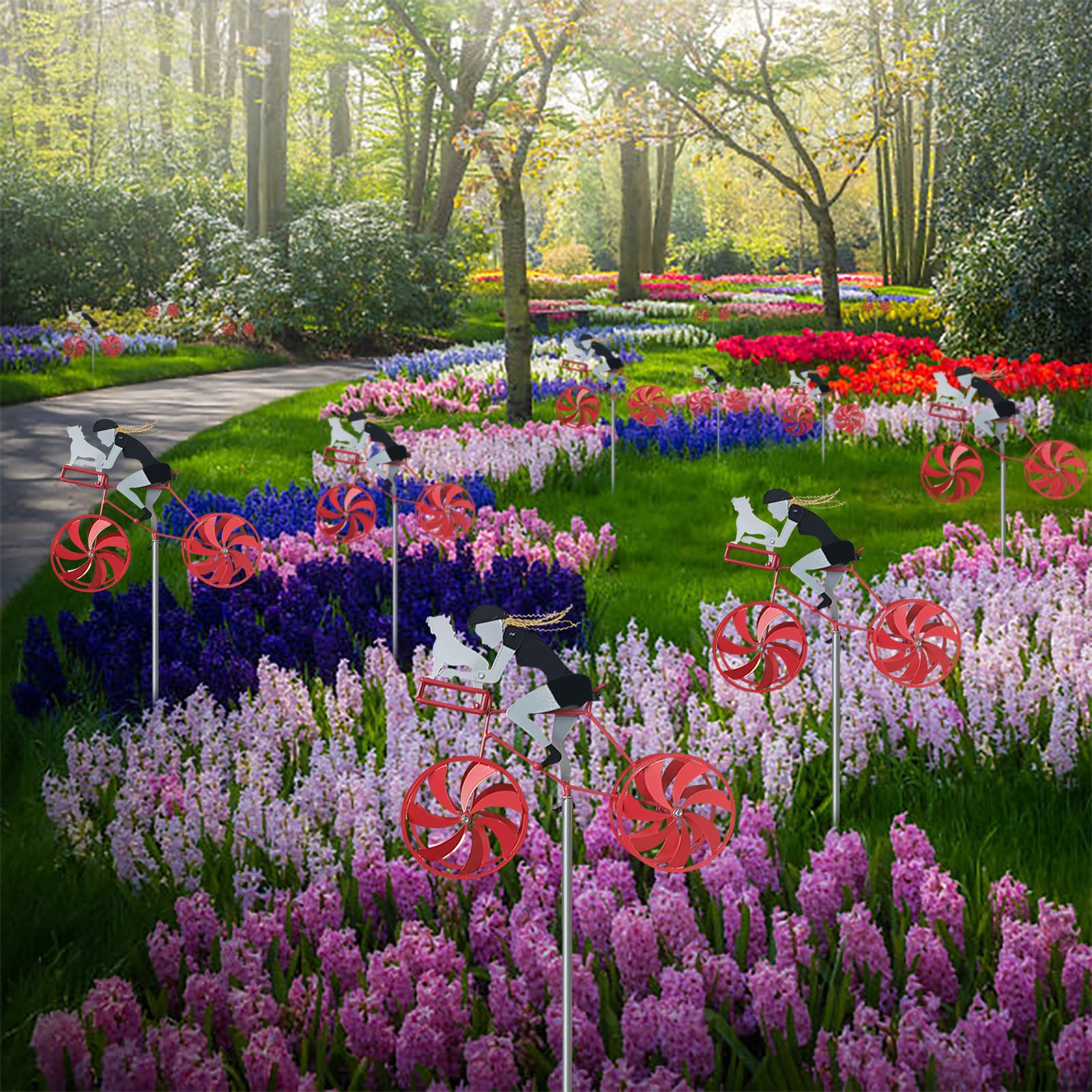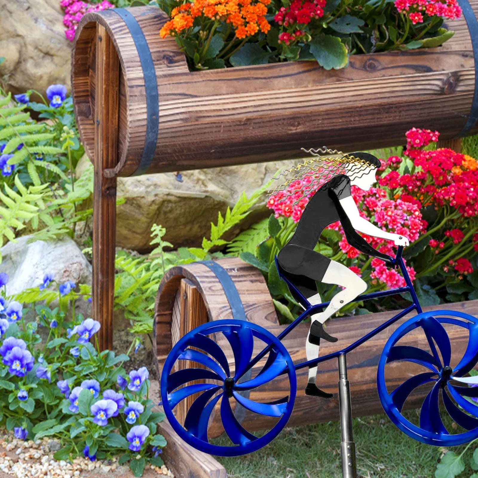 【NEW QUALITY】100% brand new quality, made of high quality metal, creative windmill, bicycle sculpture windmill beautiful decoration for garden courtyard, add movement, color and height to your landscape with this wind color metal, show amazing movement art.