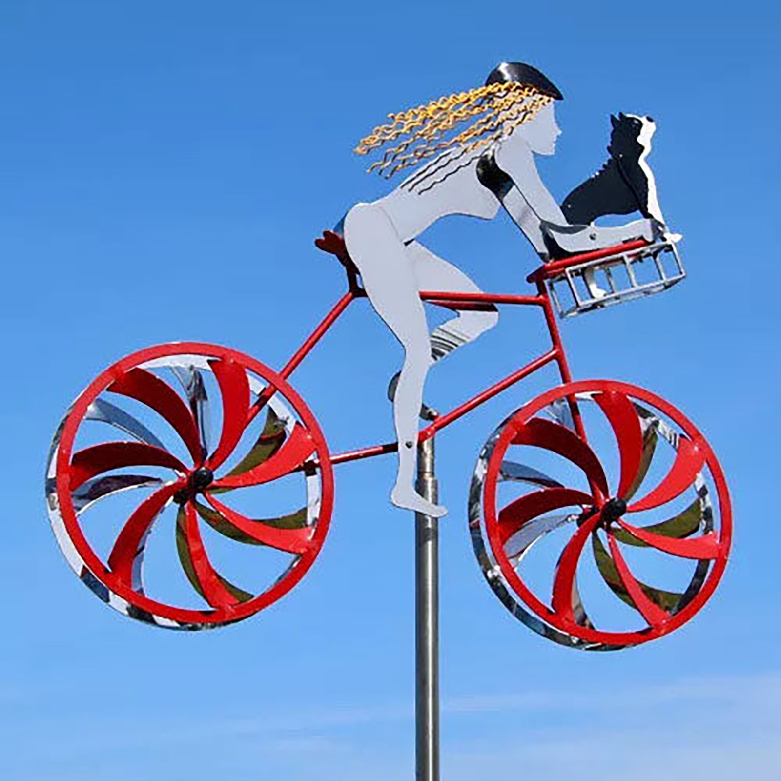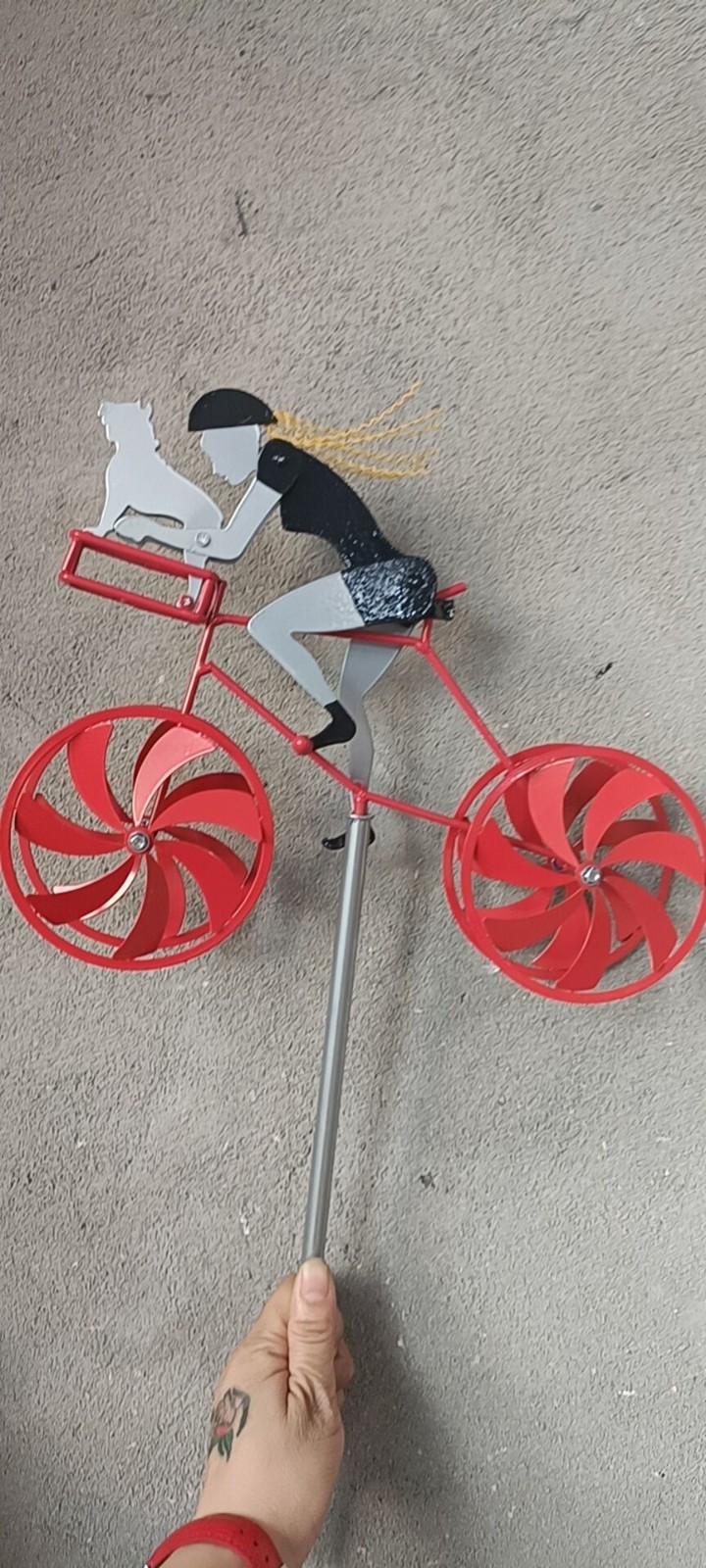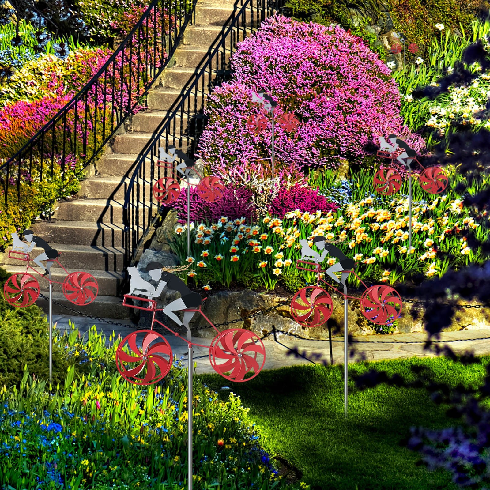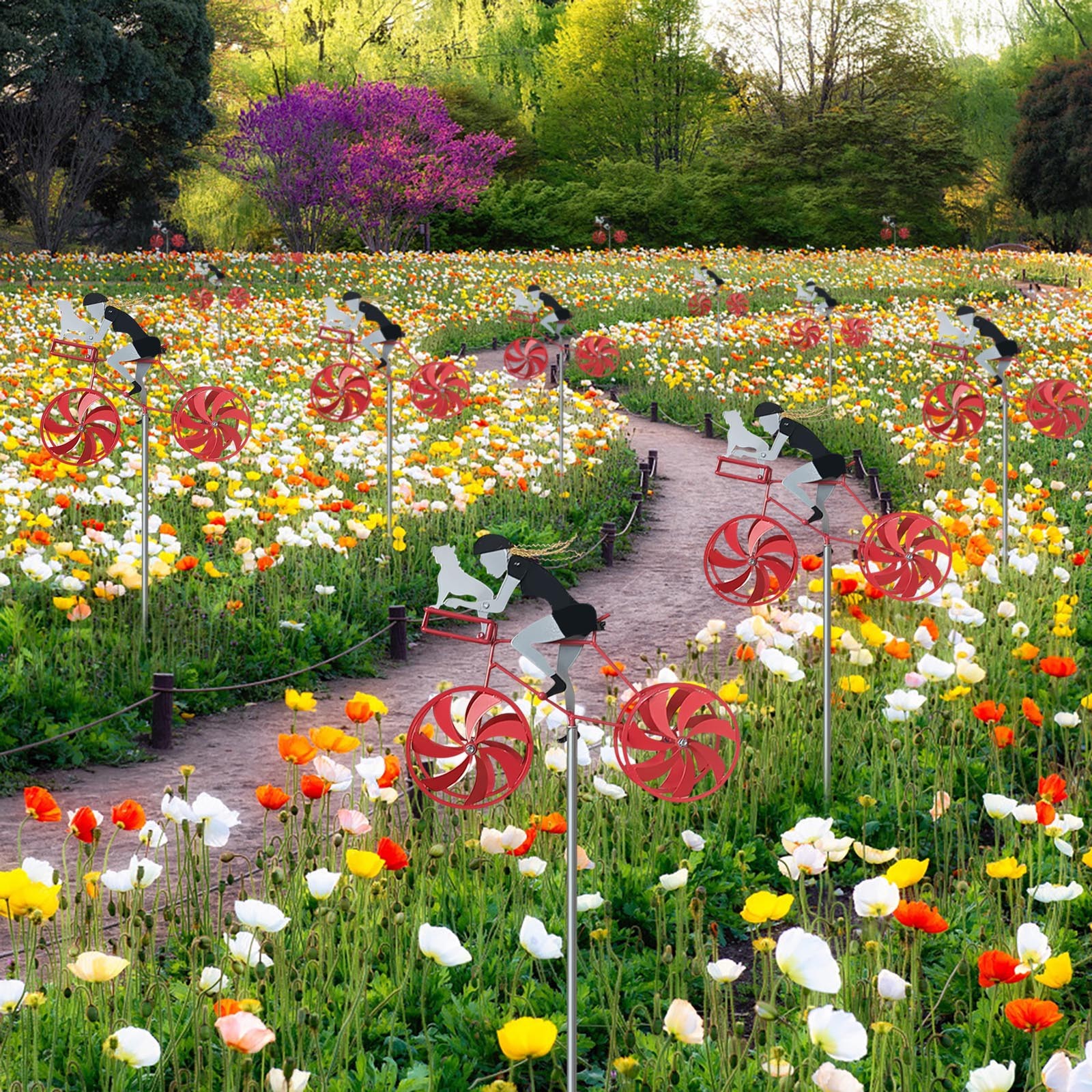 【NEW QUALITY】100% brand new quality, made of high quality metal, creative windmill, bicycle sculpture windmill beautiful decoration for garden courtyard, add movement, color and height to your landscape with this wind color metal, show amazing movement art.