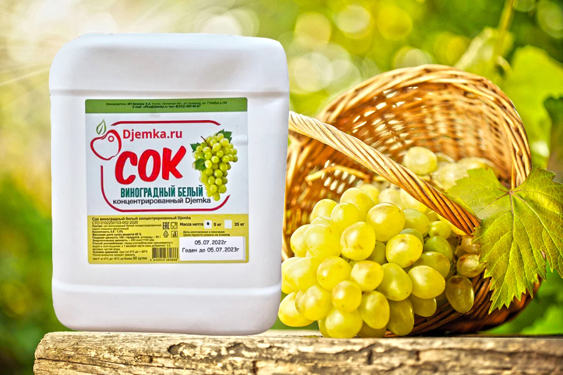 Mix a can of concentrated juice (5 kg, 4 liters) in 30-50 liters of water (to taste) and add sugar (or dextrose). Approximate proportion (may vary depending on your recipes): 6-7 kg of sugar or dextrose, 5 kg of concentrated white grape juice, 30-50 liters of water and yeast.