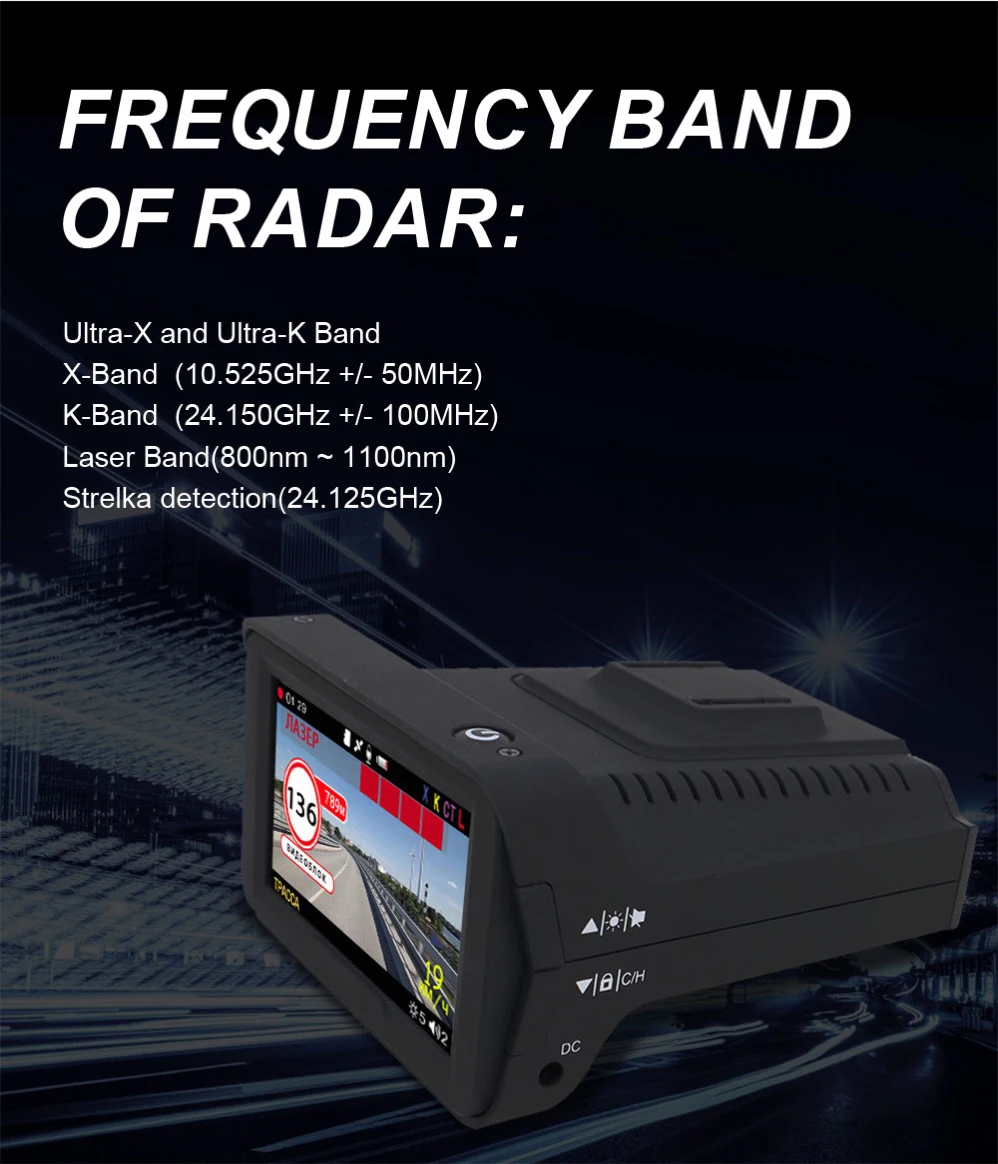 C. Не 100% радар может тревожить. Наш антирадар может работать с 90% камерами. Сила радарного сигнала, расстояние сигнализации не фиксируется. Поэтому, пожалуйста, не останавливайтесь там, ожидая антирадар. Вы можете управлять камерой и снимать видео.