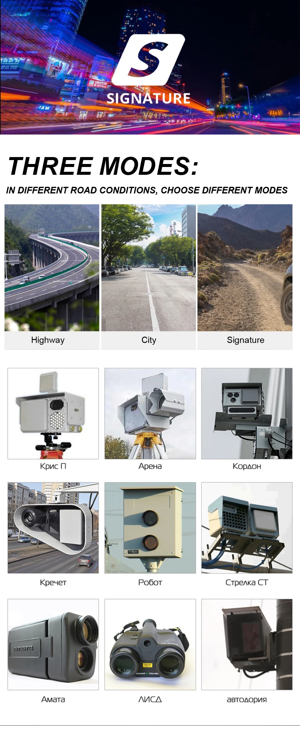 Для города 1,city2 есть несколько полос, которые могут быть закрыты. Автоматический режим. Когда ваша скорость превышает 40 км/ч, она будет тревожиться. Для режима high way, он будет оповещать все виды камеры.