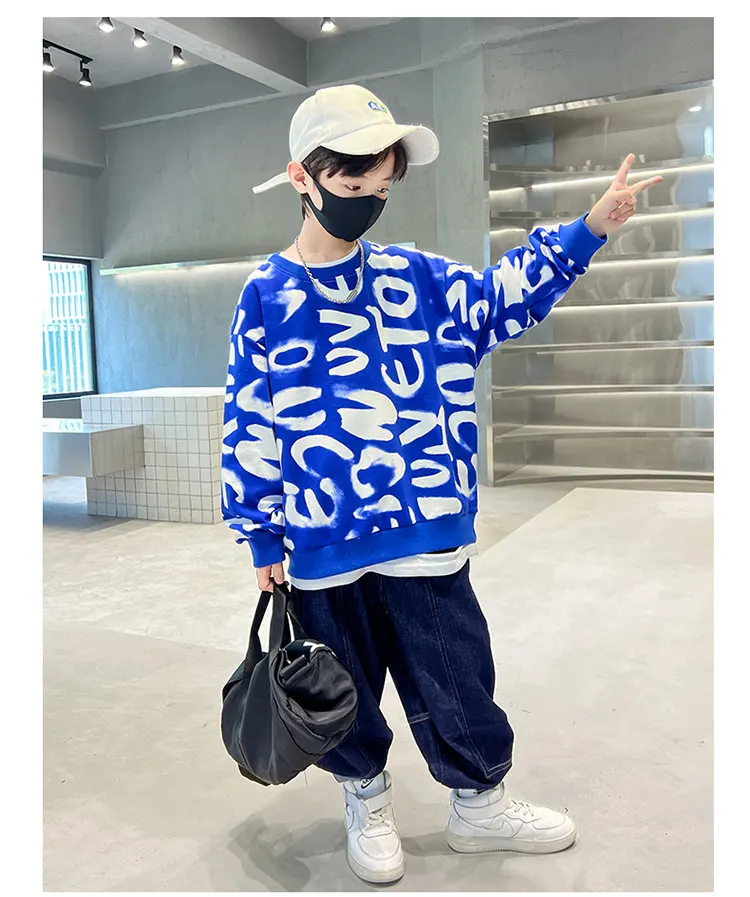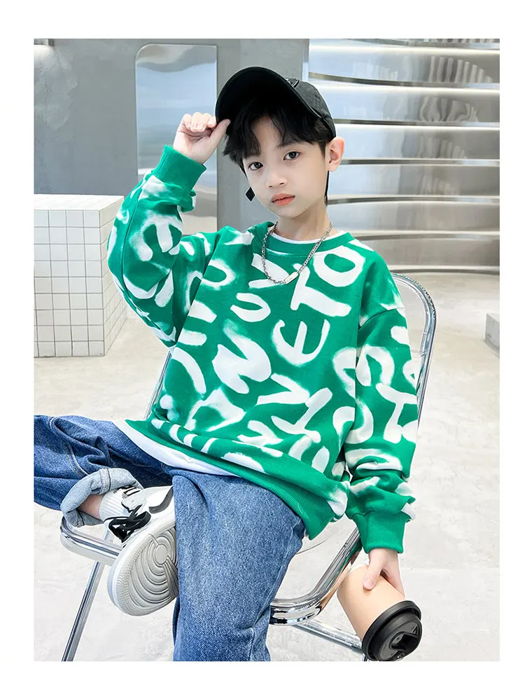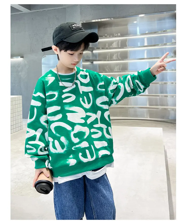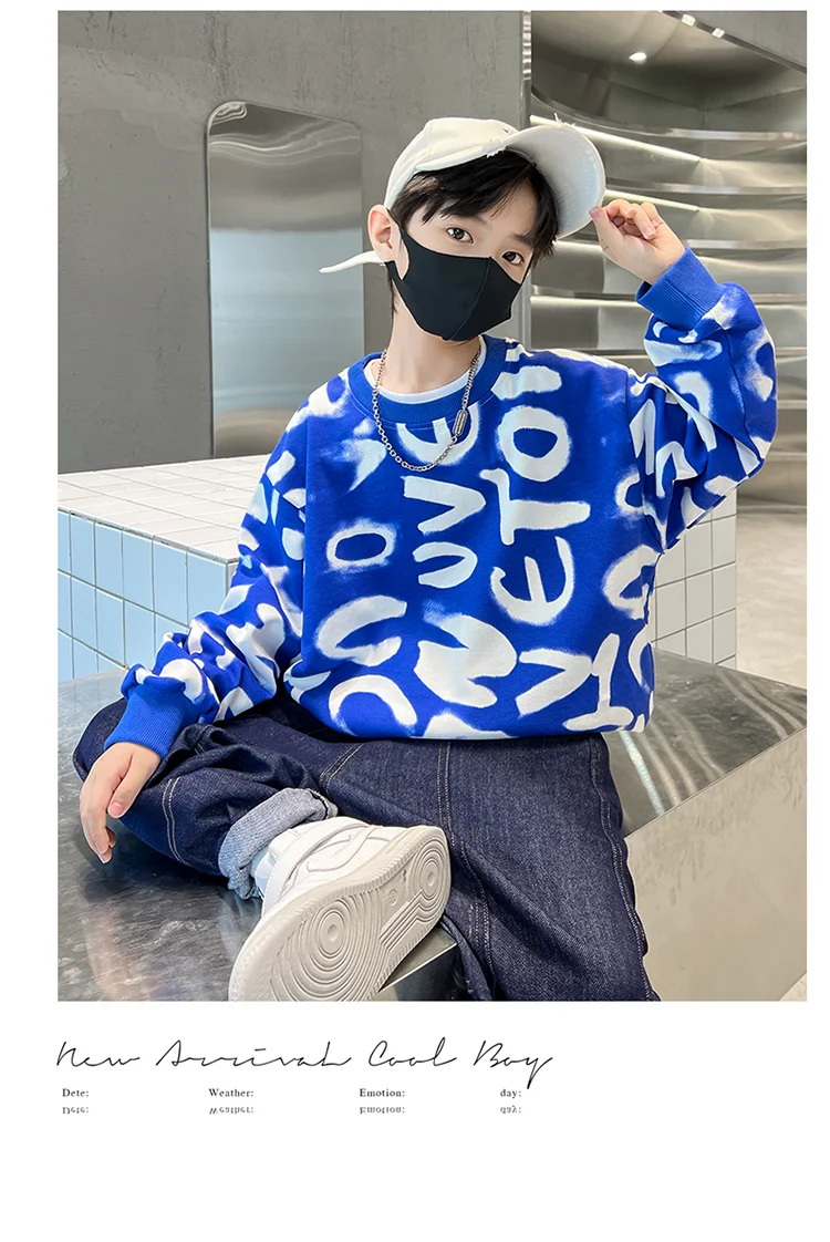 Весенне-осенняя футболка с длинными рукавами для мальчиков; Новые модные детские свитшоты; Уличная одежда для мальчиков-подростков; Топы с буквенным принтом; Пуловер; Одежда